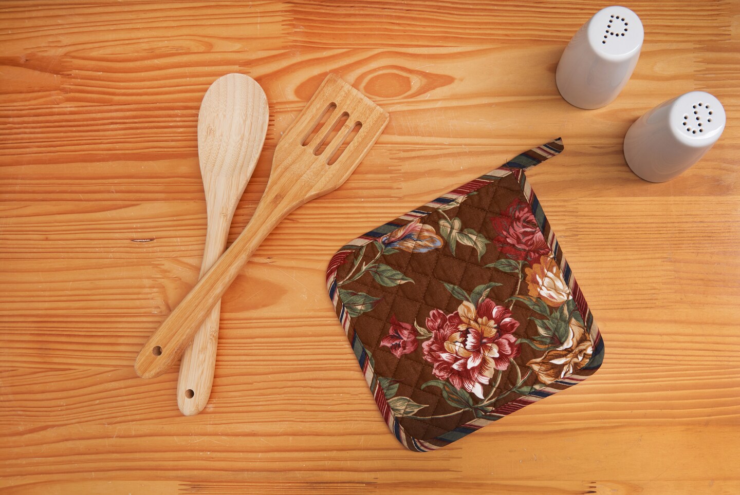 Vintage Floral Bloom Quilted Potholder w/ Hanging Loop 8" x 8"