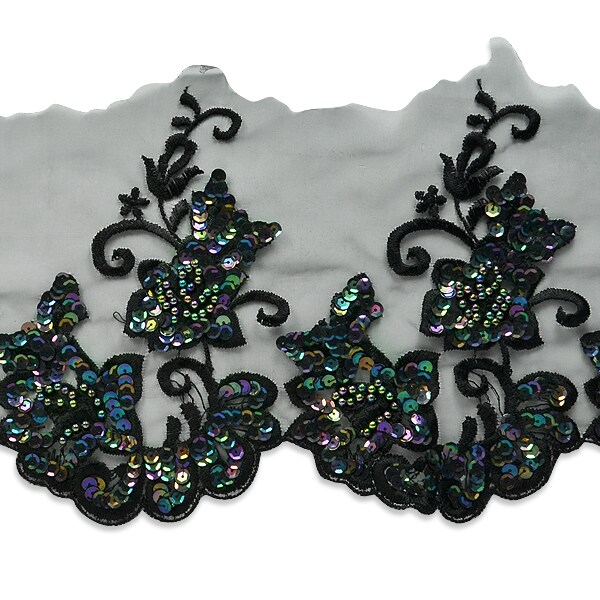 Vintage Flowers On Vine Lace Trim - Black Iris