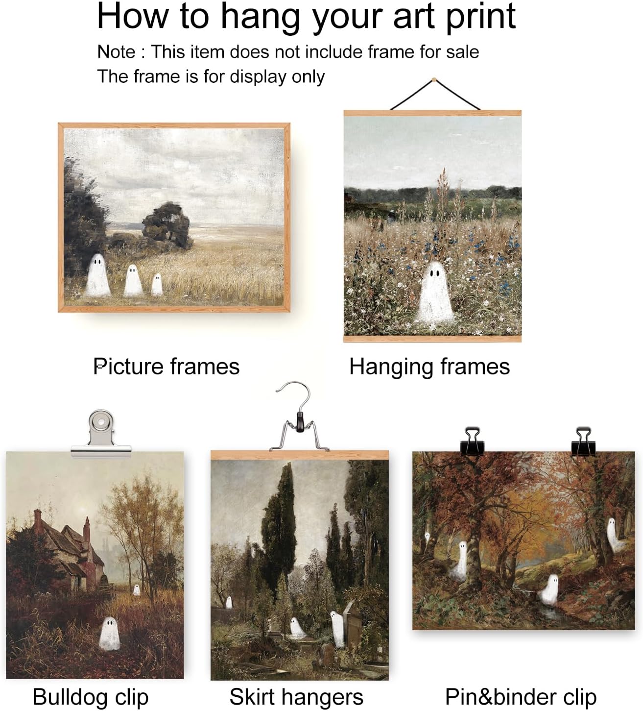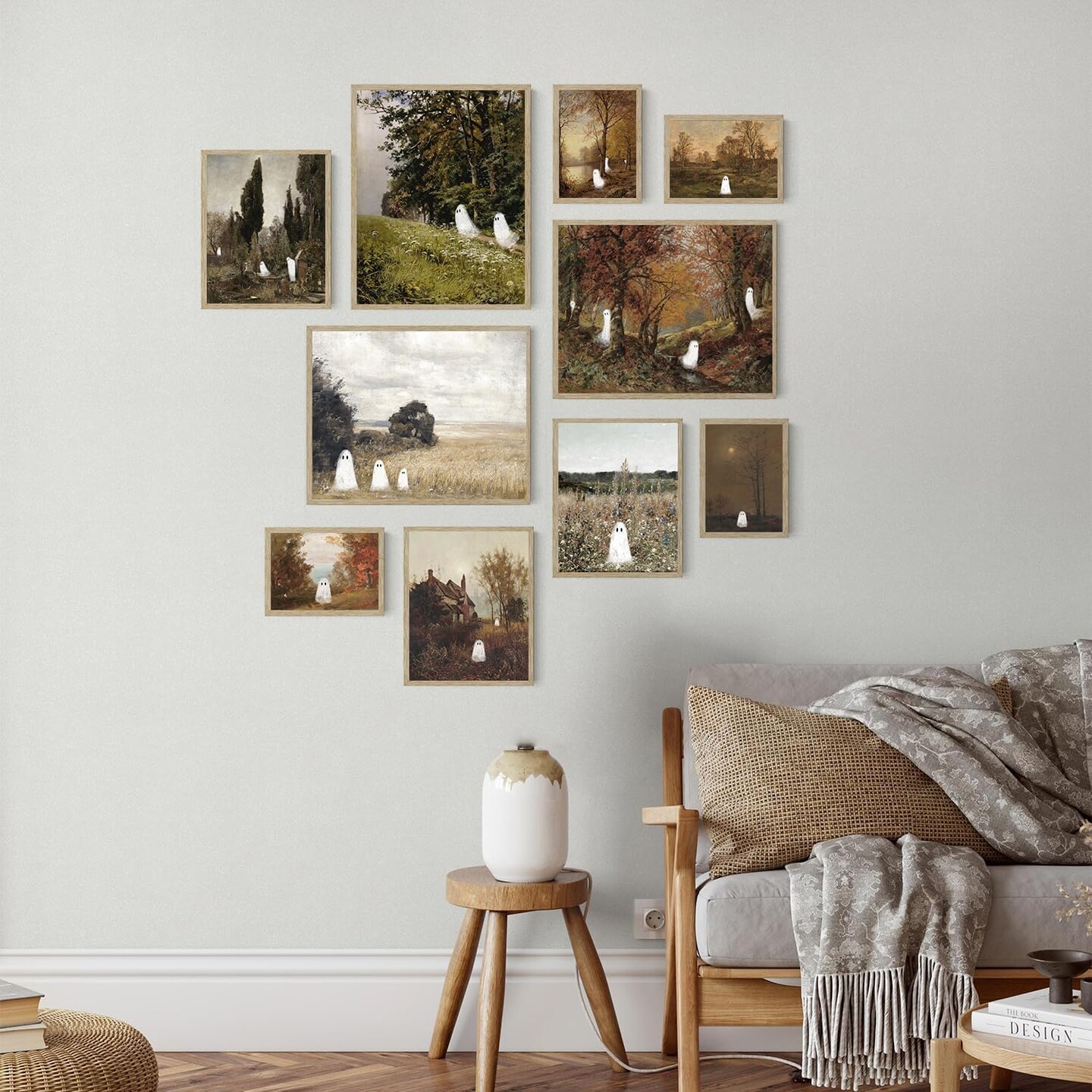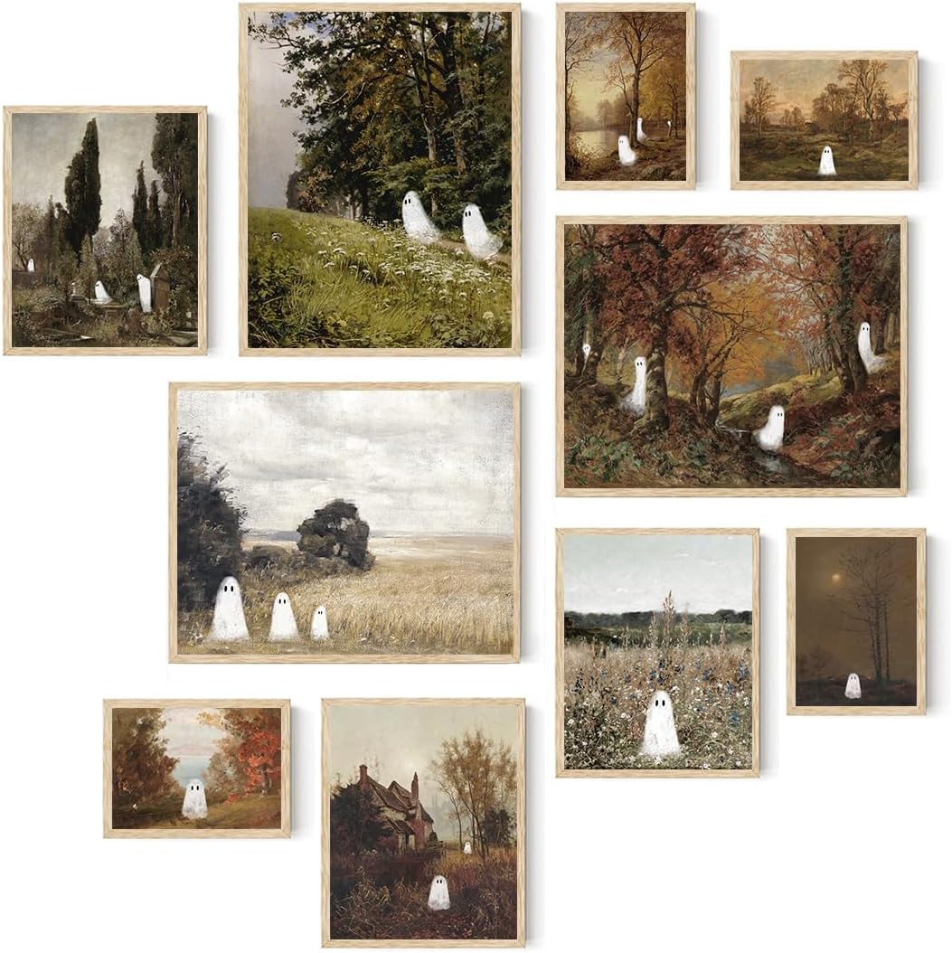 Vintage Ghost Halloween Wall Art – Retro Spooky Fall Canvas Prints, Farmhouse Aesthetic Posters for Home, Bedroom & Living Room Decor (Unframed)