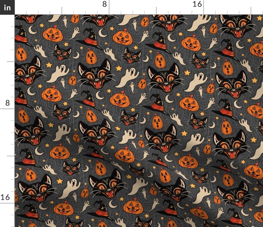 Vintage Halloween Black White Orange Ghost Witch Custom Printed Fabric by Spoonflower Various Fabrics by the Yard or Fat Quarter