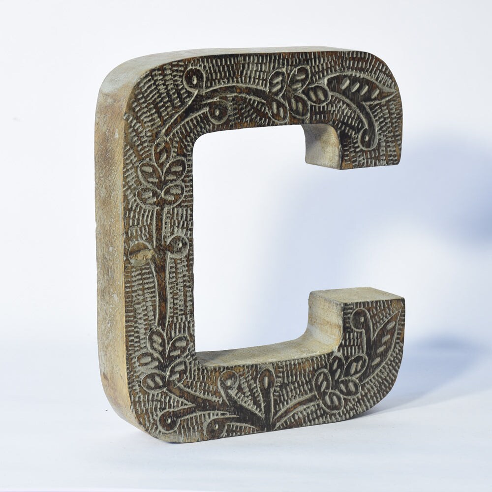 Vintage Handmade Eco-Friendly Gray Wooden Alphabet Letter Block