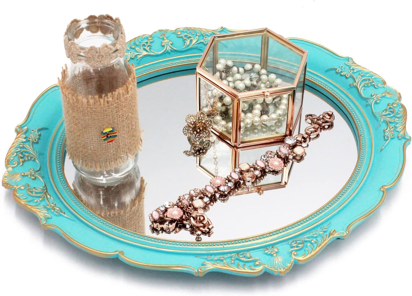 Vintage Hanging Mirrors for Bedroom Living-Room Dresser Decor Oval (Blue)