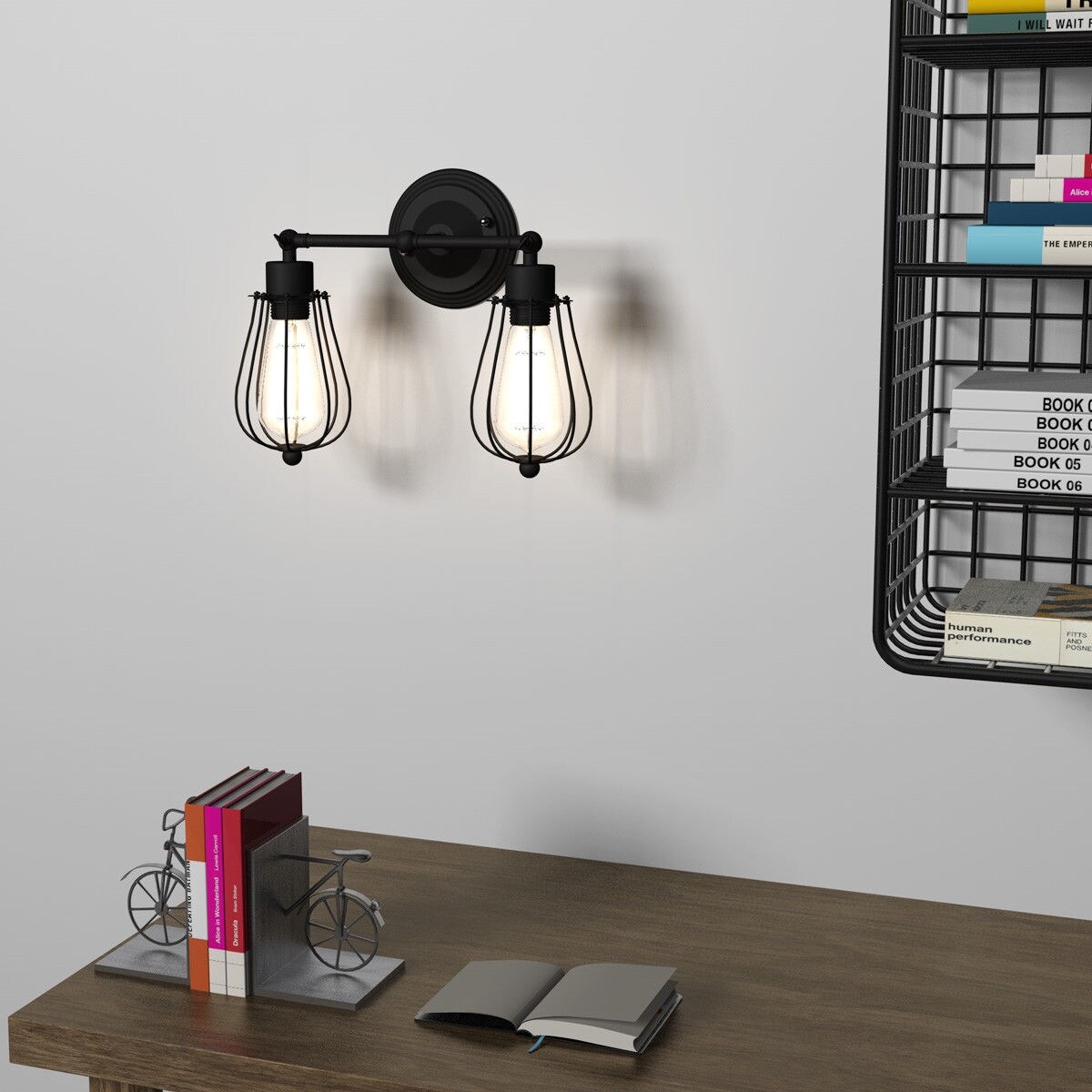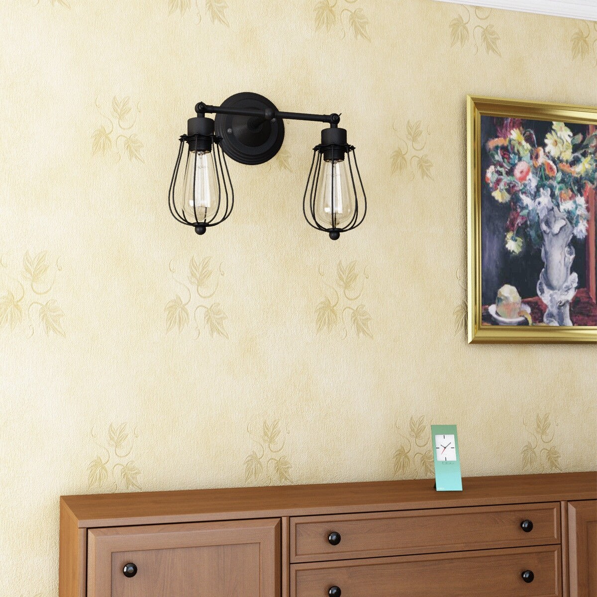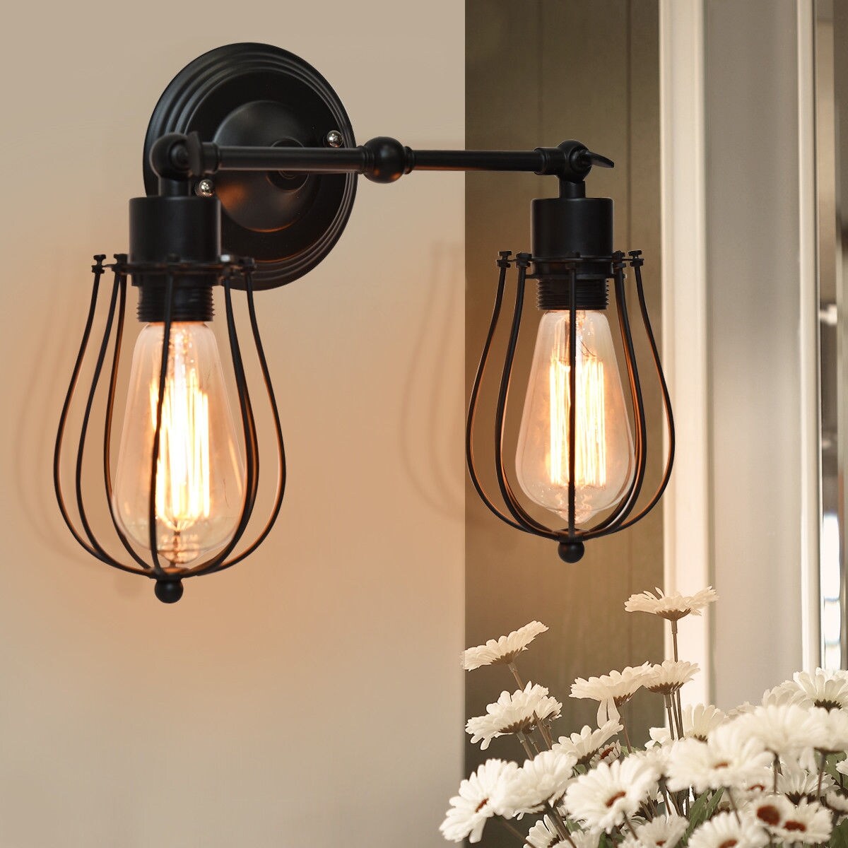 Vintage Industrial Wire Cage Wall Sconce with Edison Bulb and Adjustable Angle