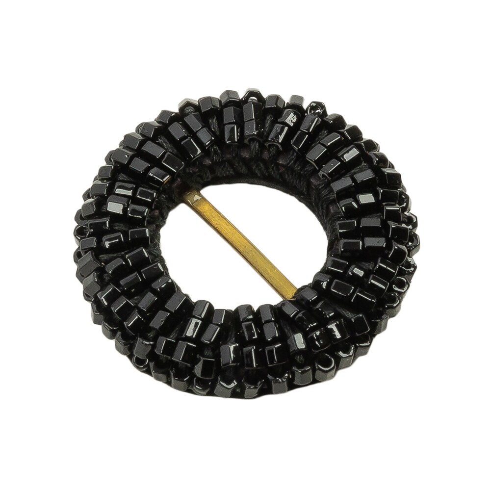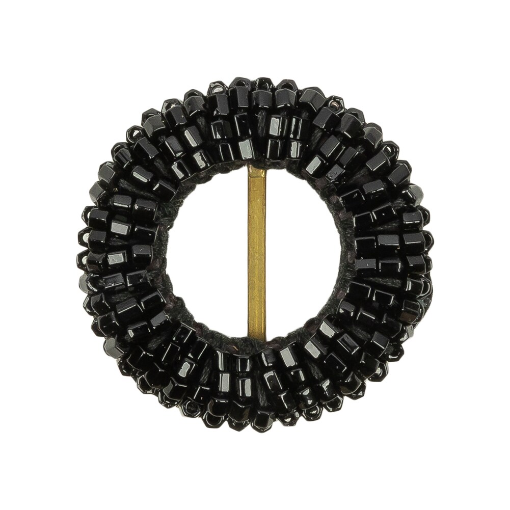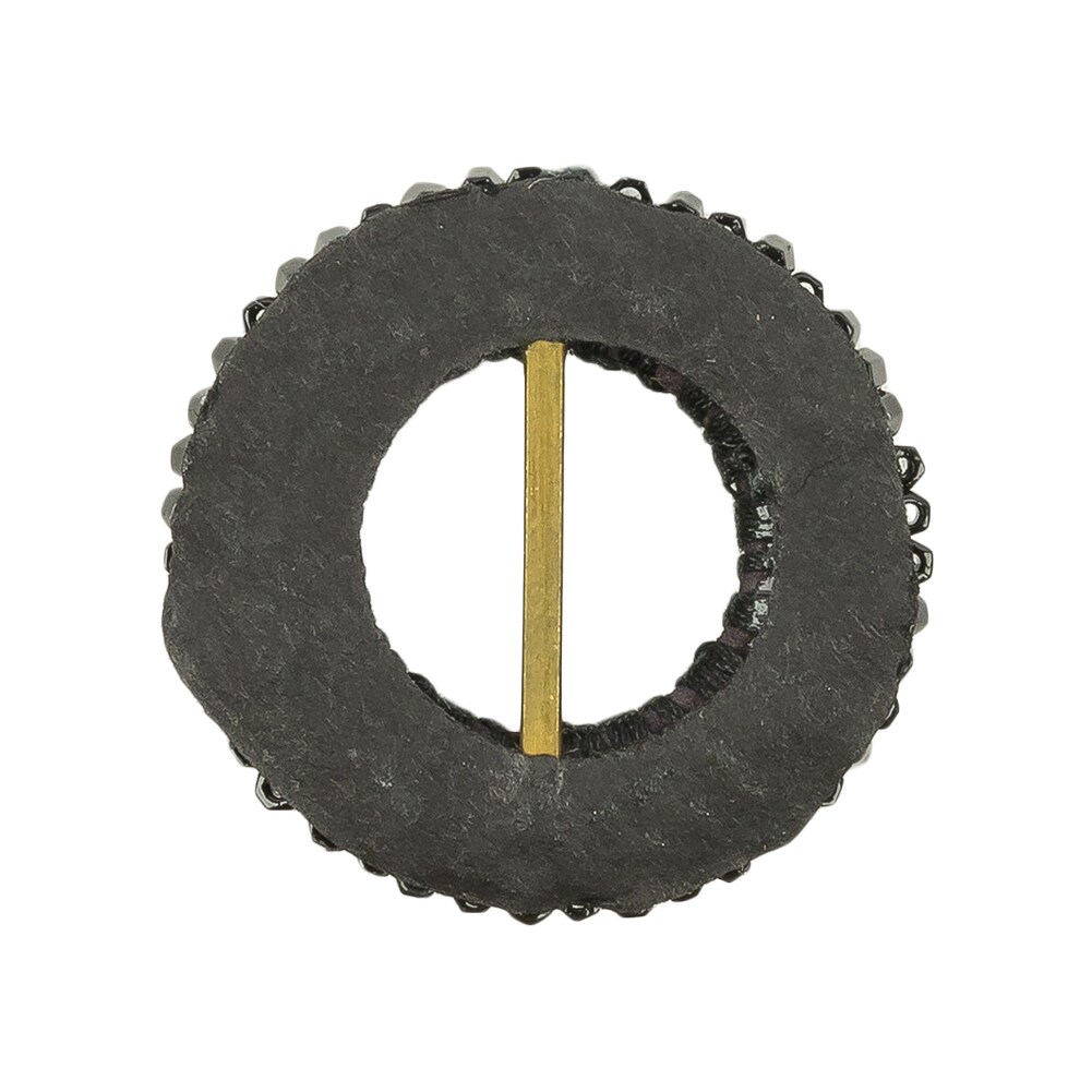 Vintage Jet Beaded Circular Slider Brass Bar Adjustable Strap 1.125 Inch Diameter