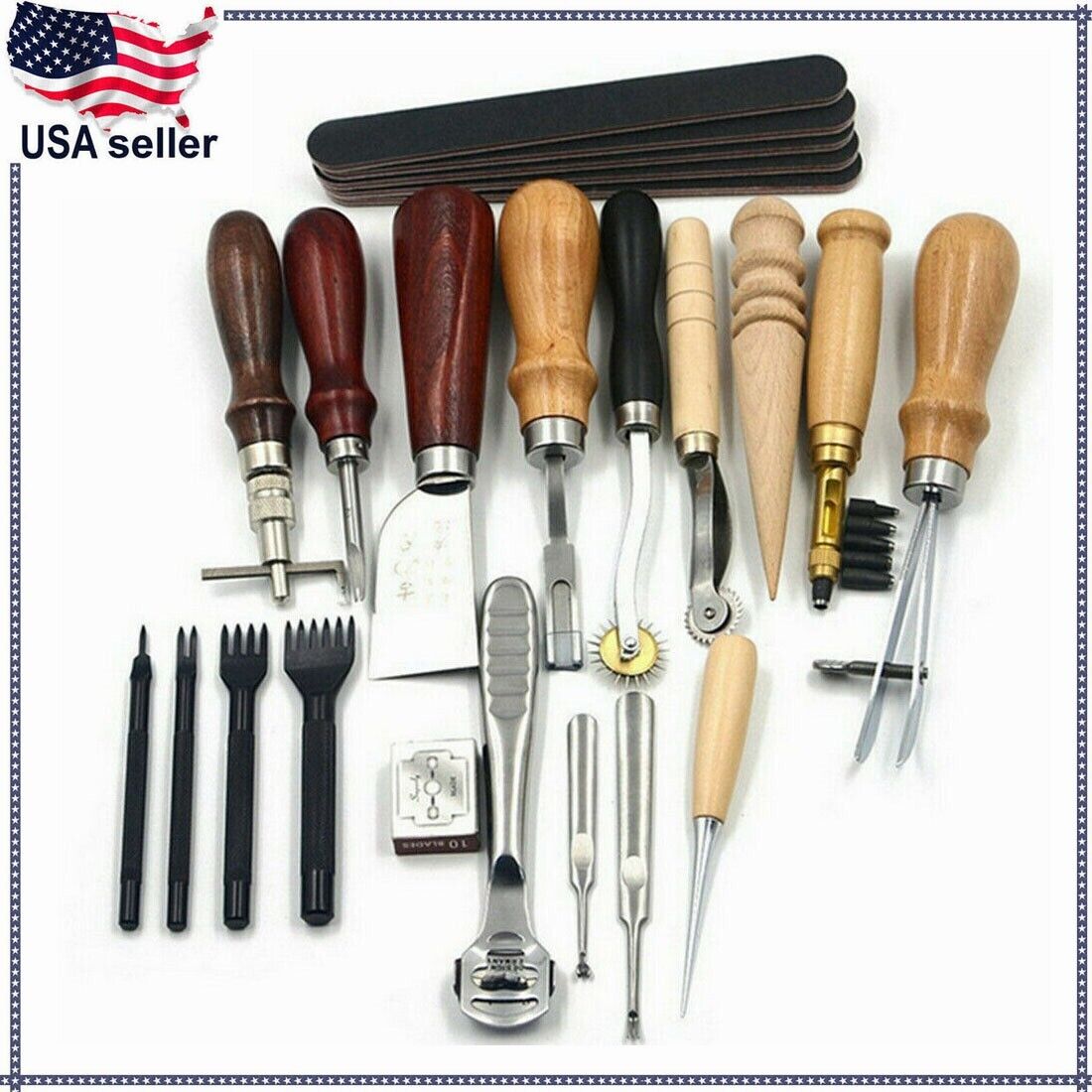 Vintage Leather Craft Tools Kit for Stitching, Sewing, Beveling, and Punching
