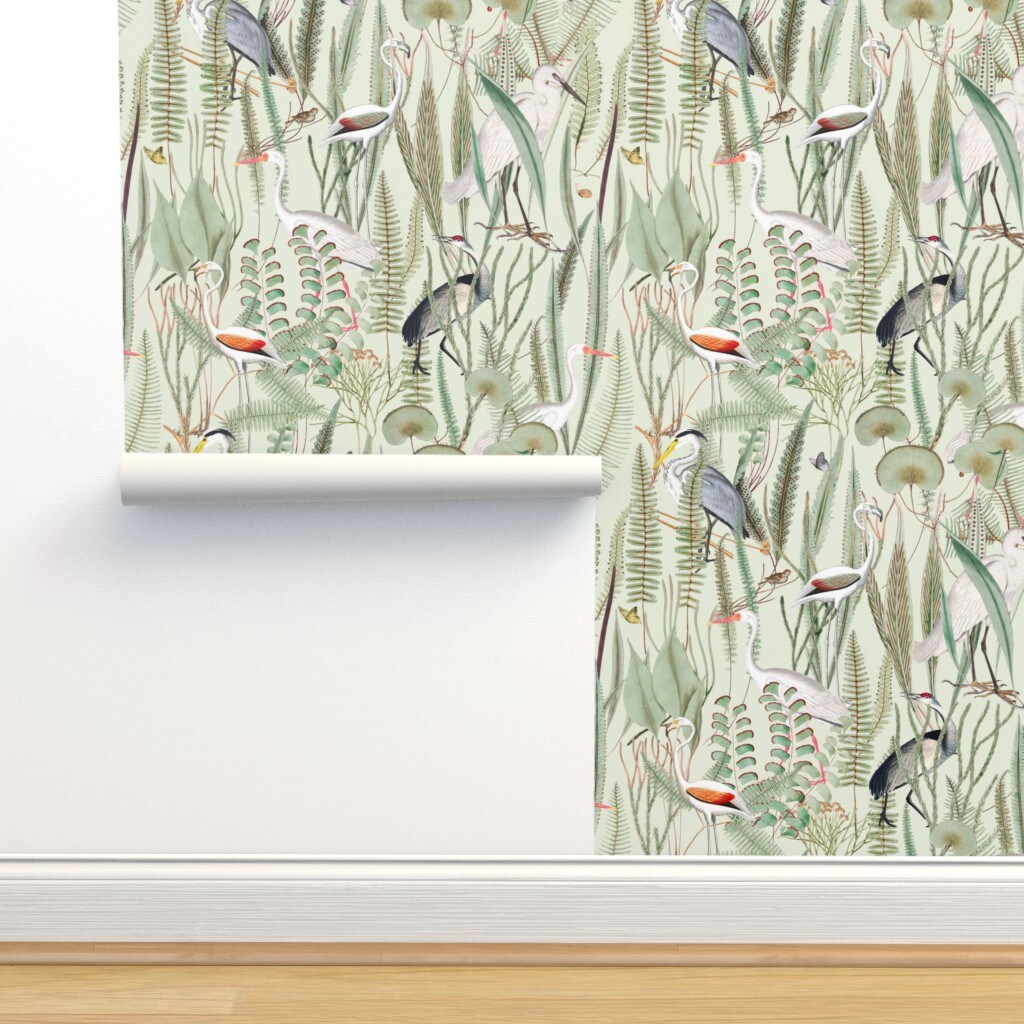 Vintage Leaves Butterfly Nature Birds Woodland Custom Pre-pasted Wallpaper by Spoonflower Pre-Pasted Wallpaper 2FT Wide