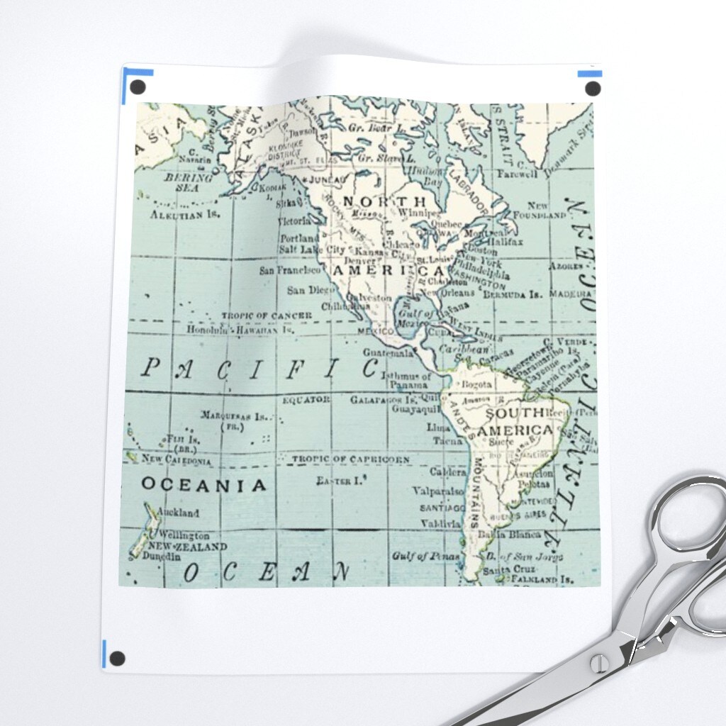 Vintage Maps Blue And Cream World Map Geography Countries Travel Custom Printed Fabric by Spoonflower Various Fabrics by the Yard or Fat Quarter