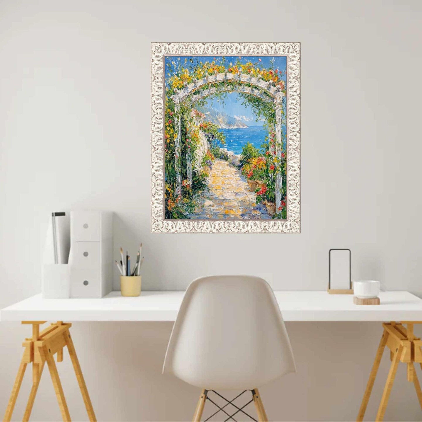Vintage Ornate White Wash Picture Frame 12x36 frame