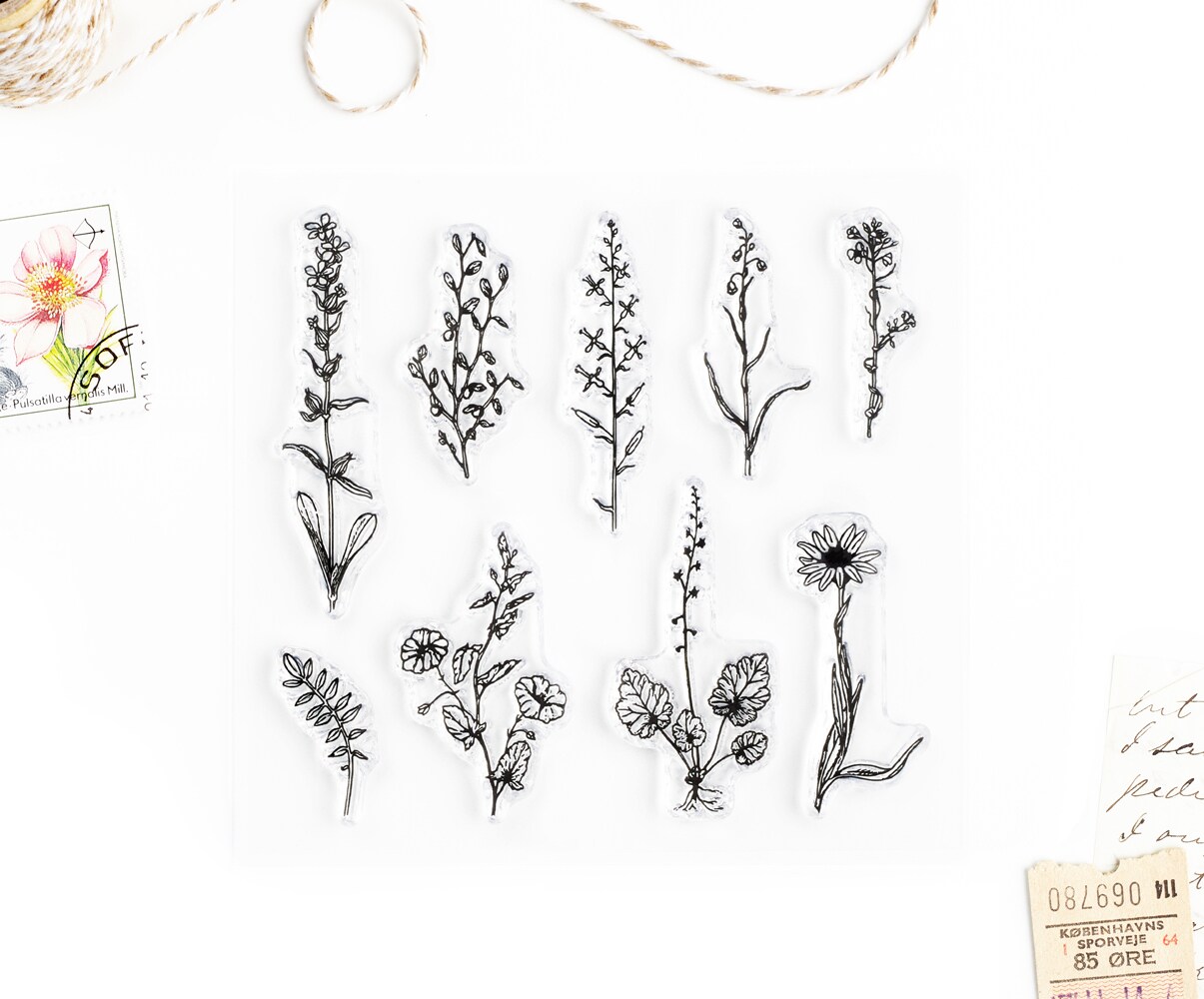 Vintage Plants and Flowers Small Clear Stamps 4x4 inch by Wintertime Crafts
