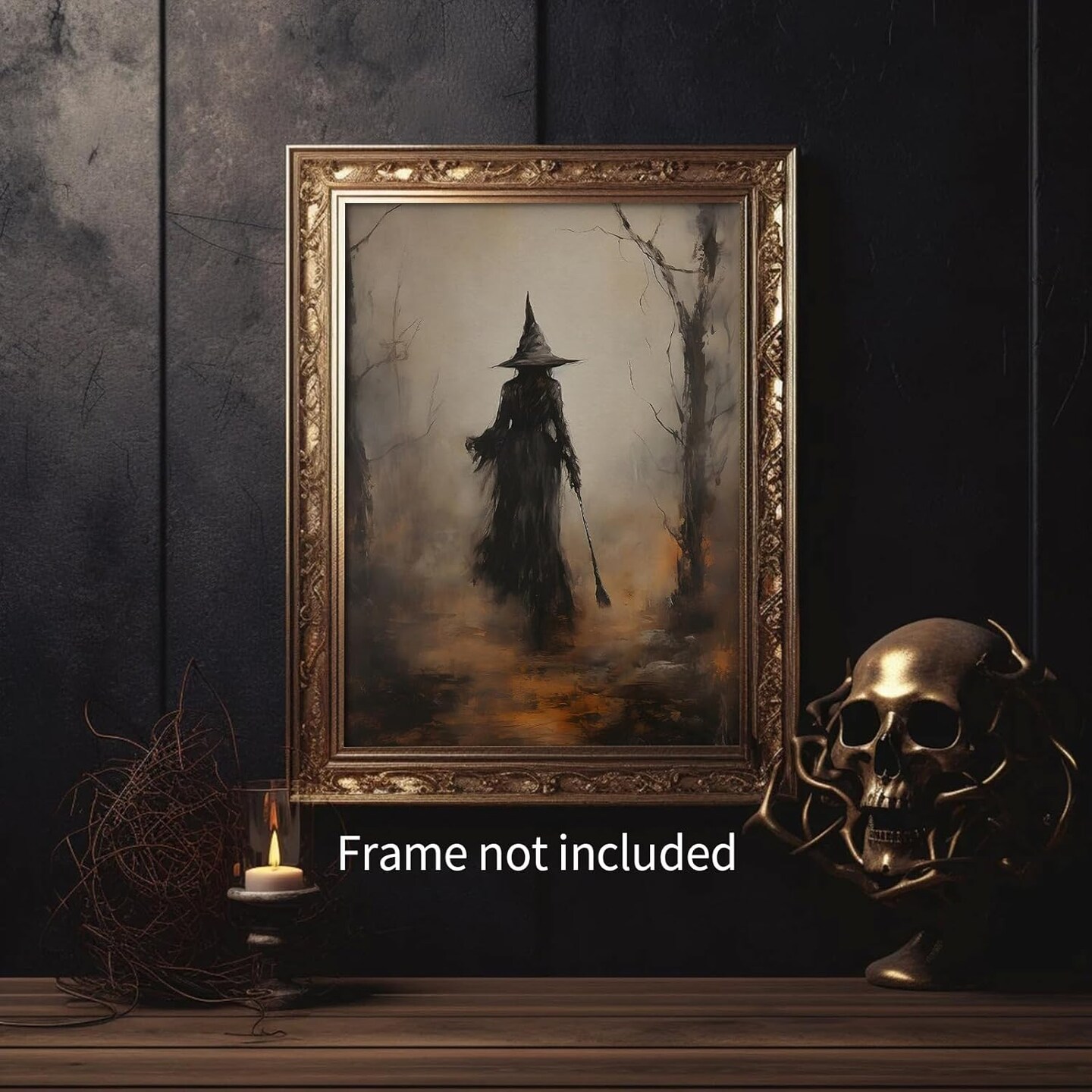 Vintage Rustic Witch Posters – Halloween Canvas Wall Art, Witch in the Forest Painting Prints, Goth Dark Moody Wall Decor, 12x16 Inch, Unframed