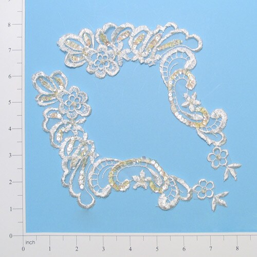 Vintage Scallop Swirl Lace Applique/Patch 2 Pack 9" x 2"