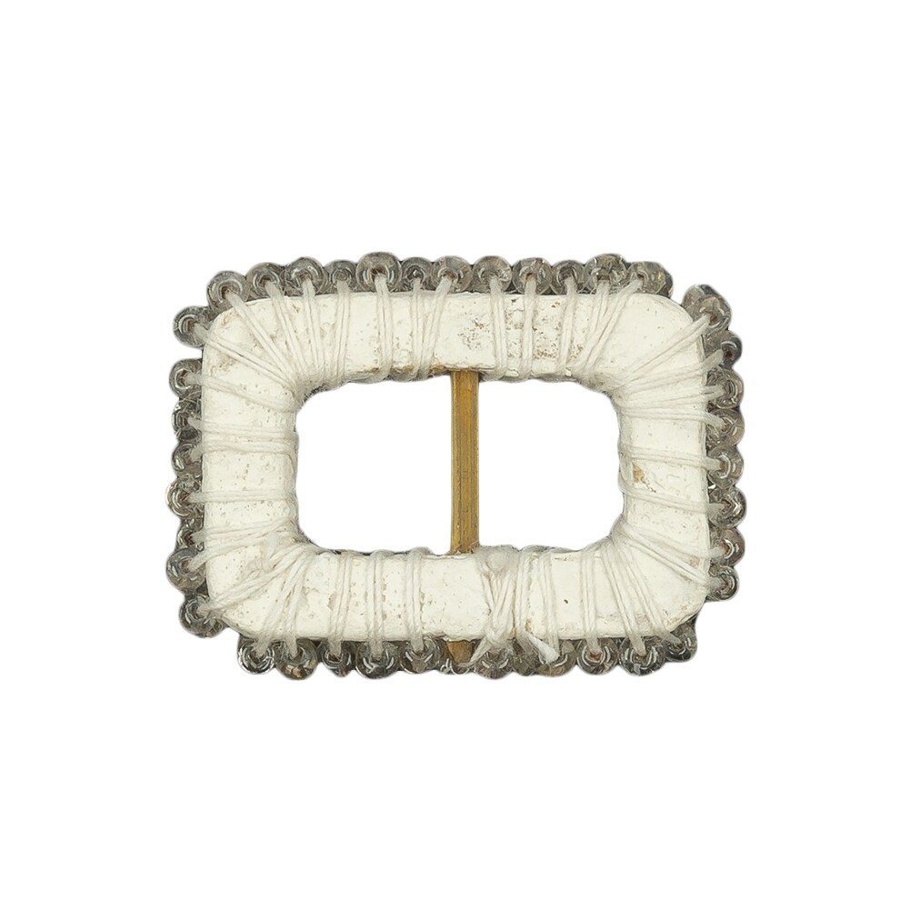 Vintage Silver Lined Beaded Rectangular Slider Brass Bar Adjustable Strap 0.875 x 1.125 Inch