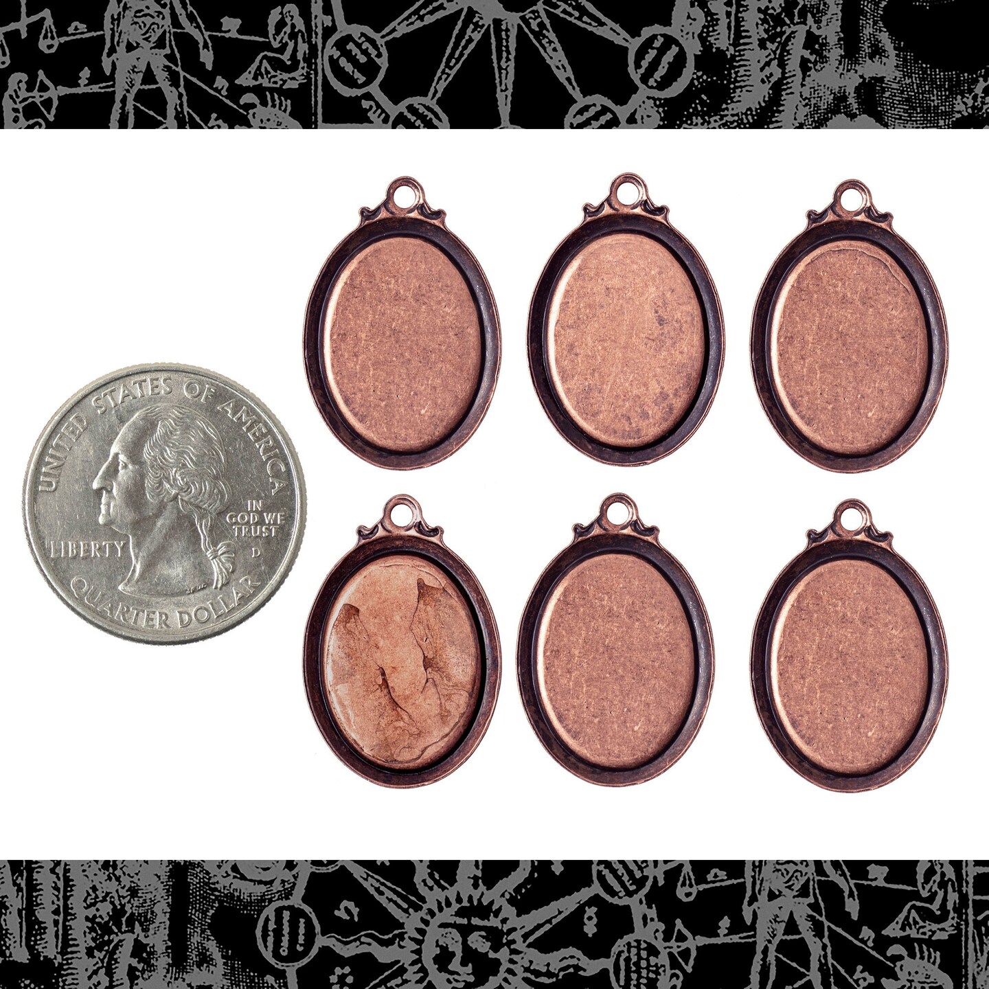 Vintage Simple Antiqued Copper Plated Brass Cameo Frames for 13mm x 18mm - Set of Six - C-F11