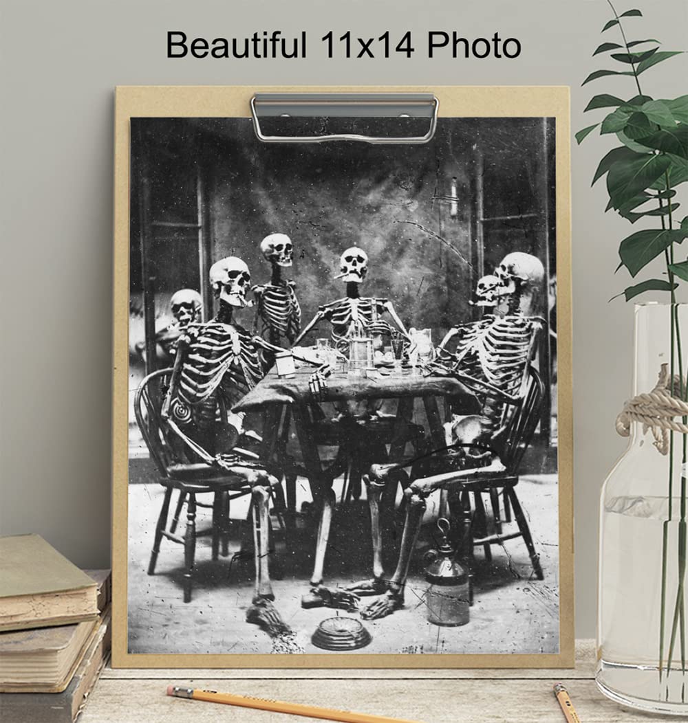 Vintage Skeleton Wall Art 11x14 – Gothic & Horror Decor, Funny Scary Skeleton Poster, Pagan Gifts, Halloween Wall Decoration, Unframed