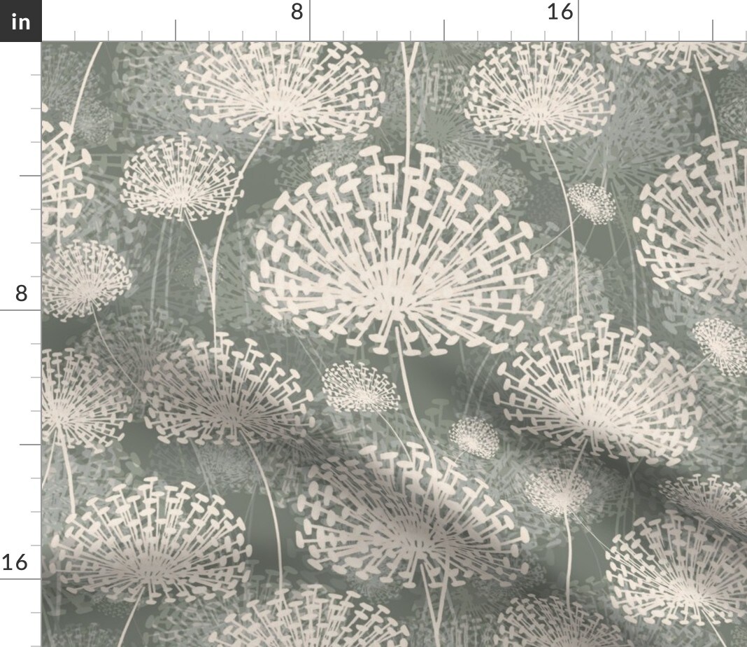 Vintage Style Dandelions Gray Cream Neutral Flowers Floral Nature Custom Printed Fabric by Spoonflower Various Fabrics by the Yard or Fat Quarter