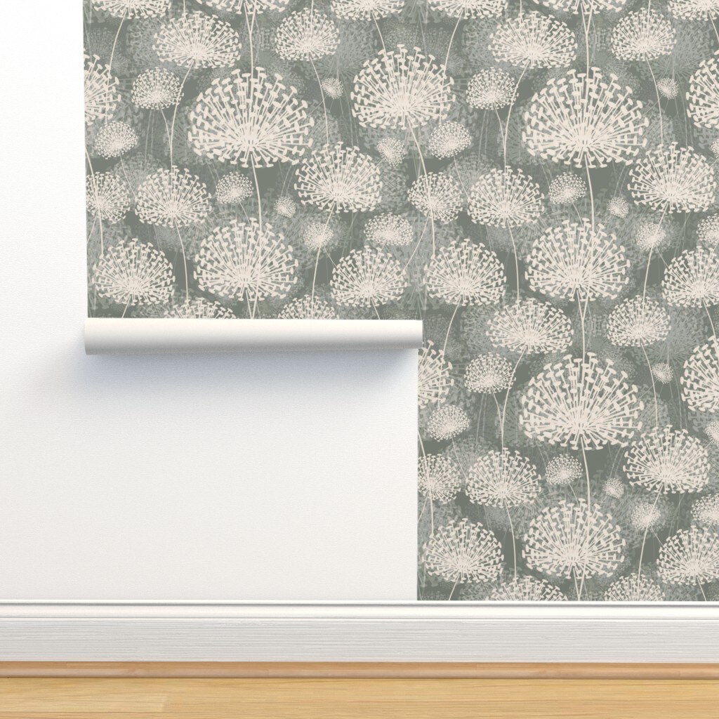 Vintage Style Dandelions Gray Cream Neutral Flowers Floral Nature Custom Removable Wallpaper by Spoonflower Peel & Stick Wallpaper 2FT Wide