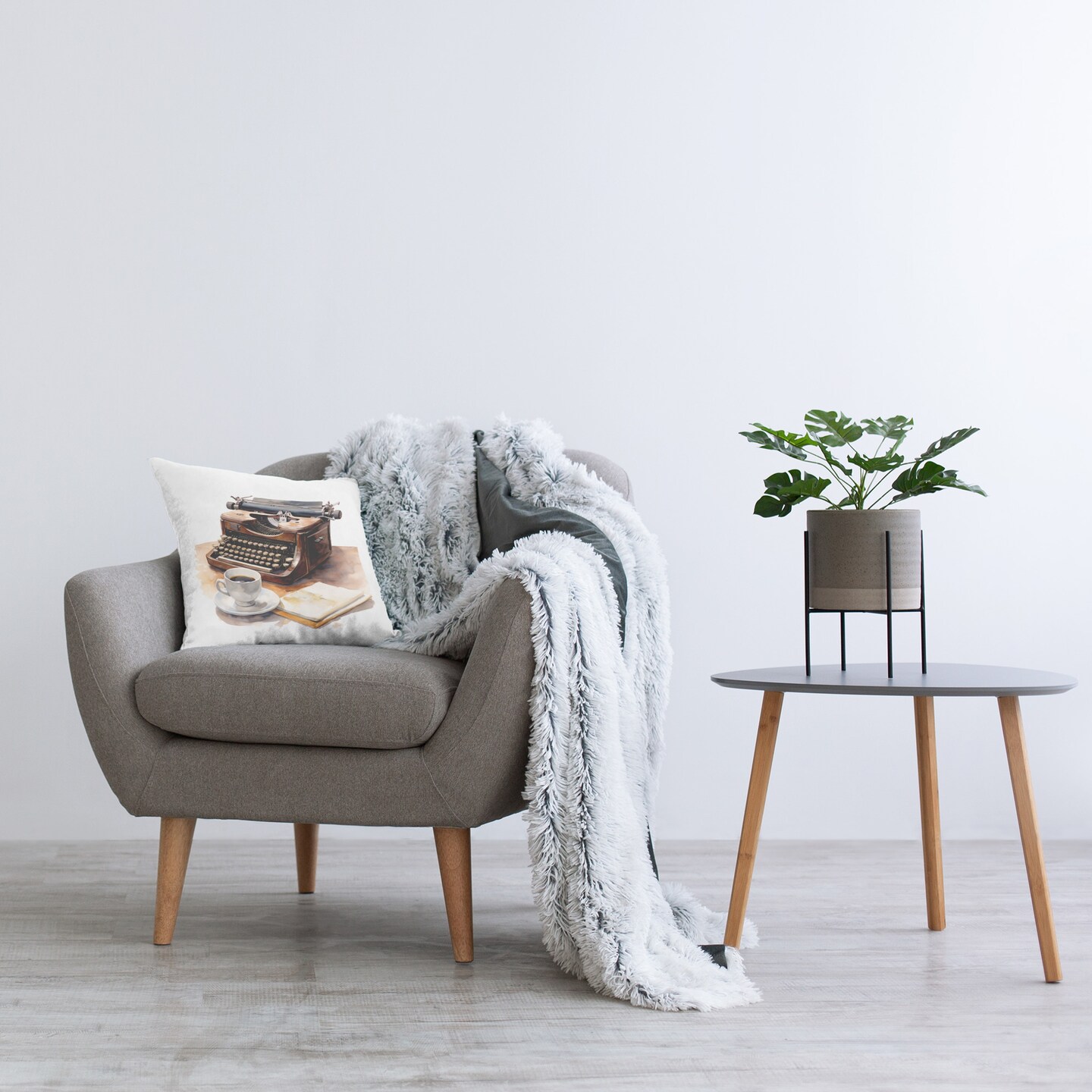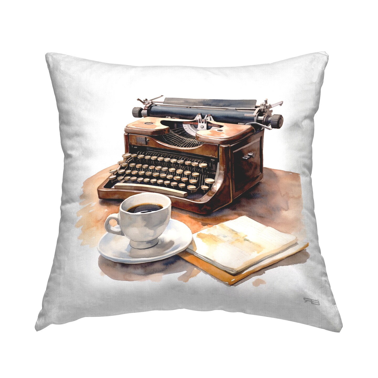 Vintage Typewriter & Mug Design by RB Throw Pillow