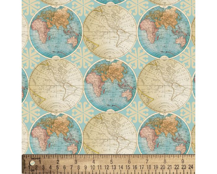 Vintage World Globes Cotton Fabric | By the Yard | Sewing and Crafting | 44 inches wide