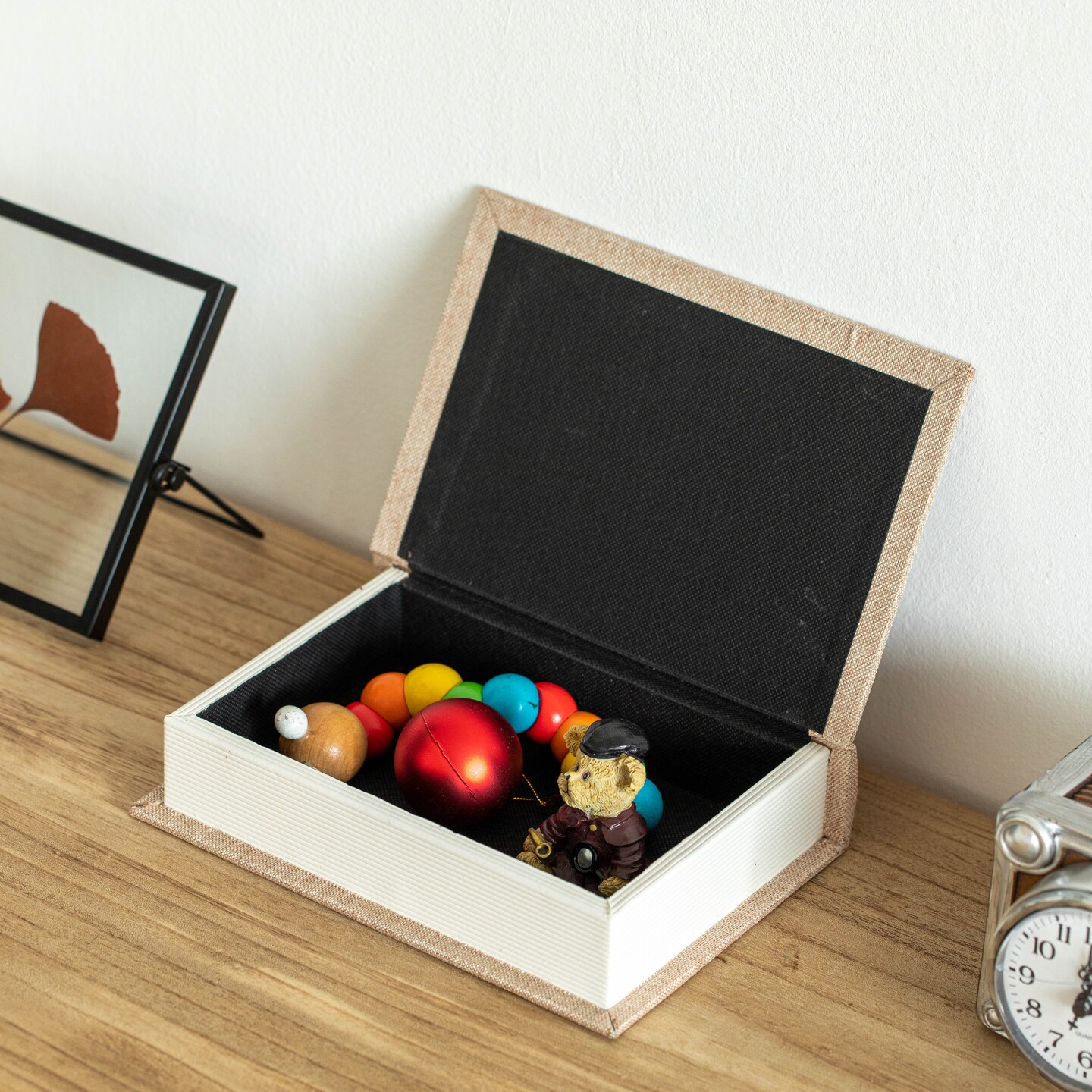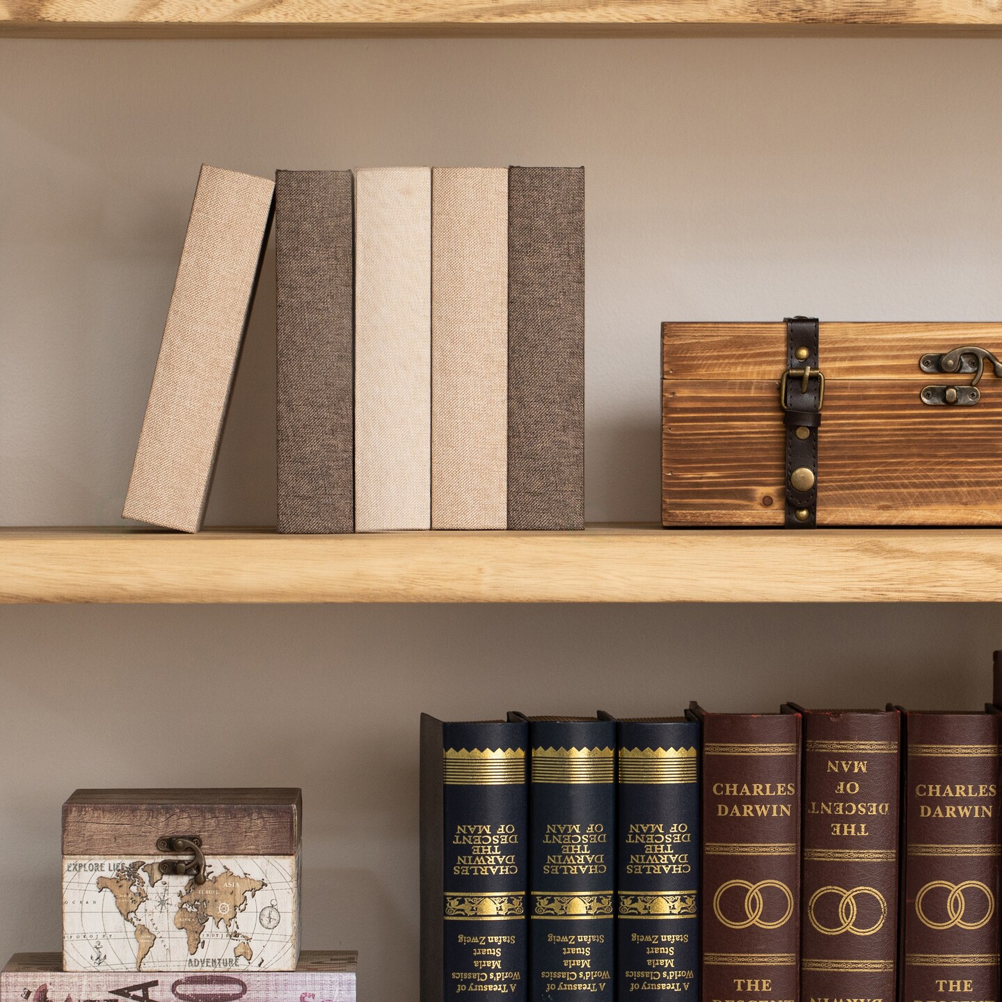 Vintiquewise 8" Classic Linen-Covered MDF Book Box Vintage-Style Decorative Storage Case for Keepsakes Jewelry Trinkets & Documents Elegant Home Decor Accent for Shelves Desks or Coffee Tables