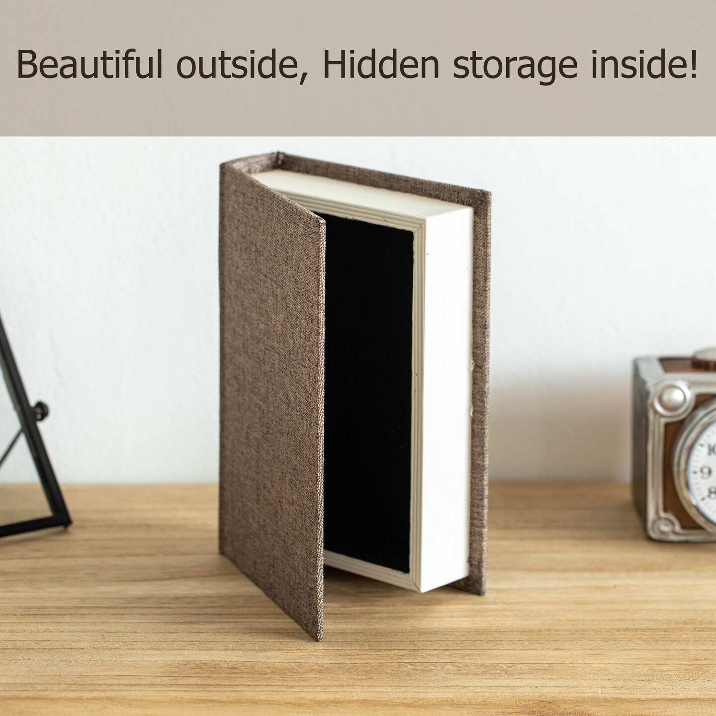 Vintiquewise 8" Classic Linen-Covered MDF Book Box Vintage-Style Decorative Storage Case for Keepsakes Jewelry Trinkets & Documents Elegant Home Decor Accent for Shelves Desks or Coffee Tables