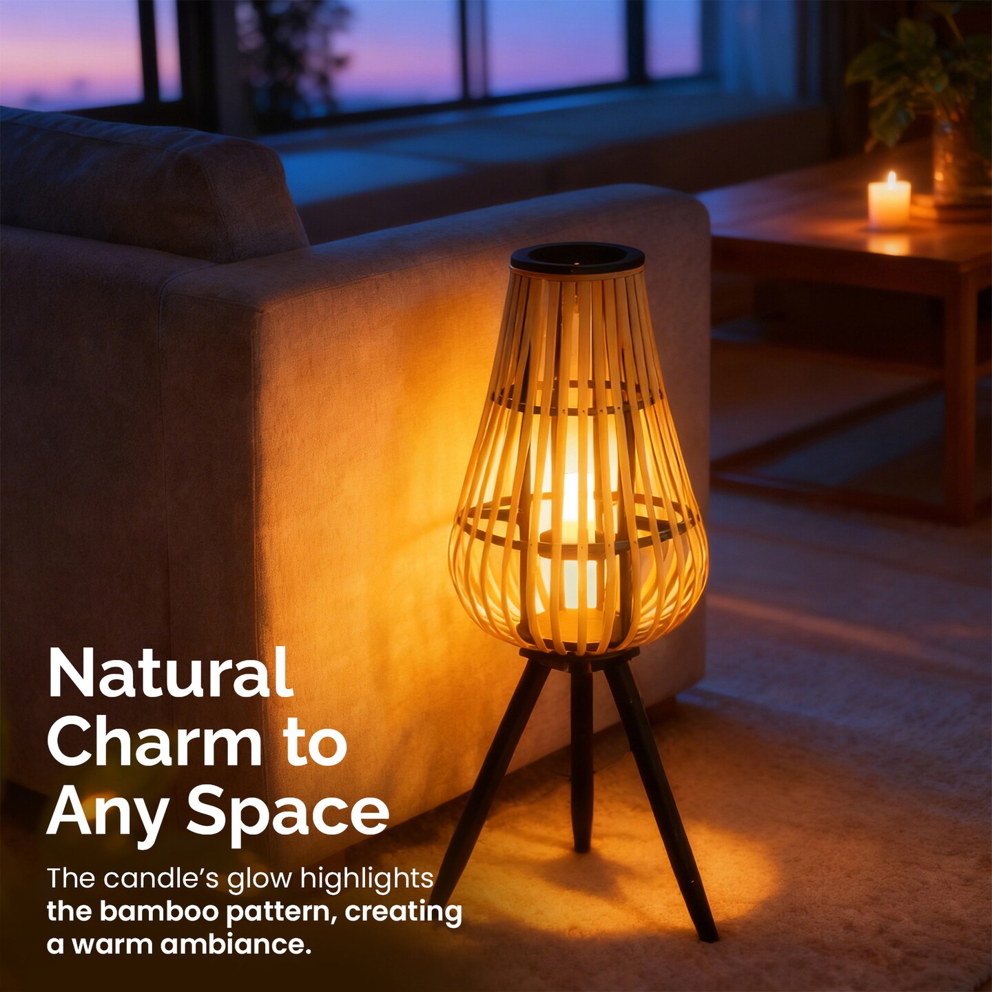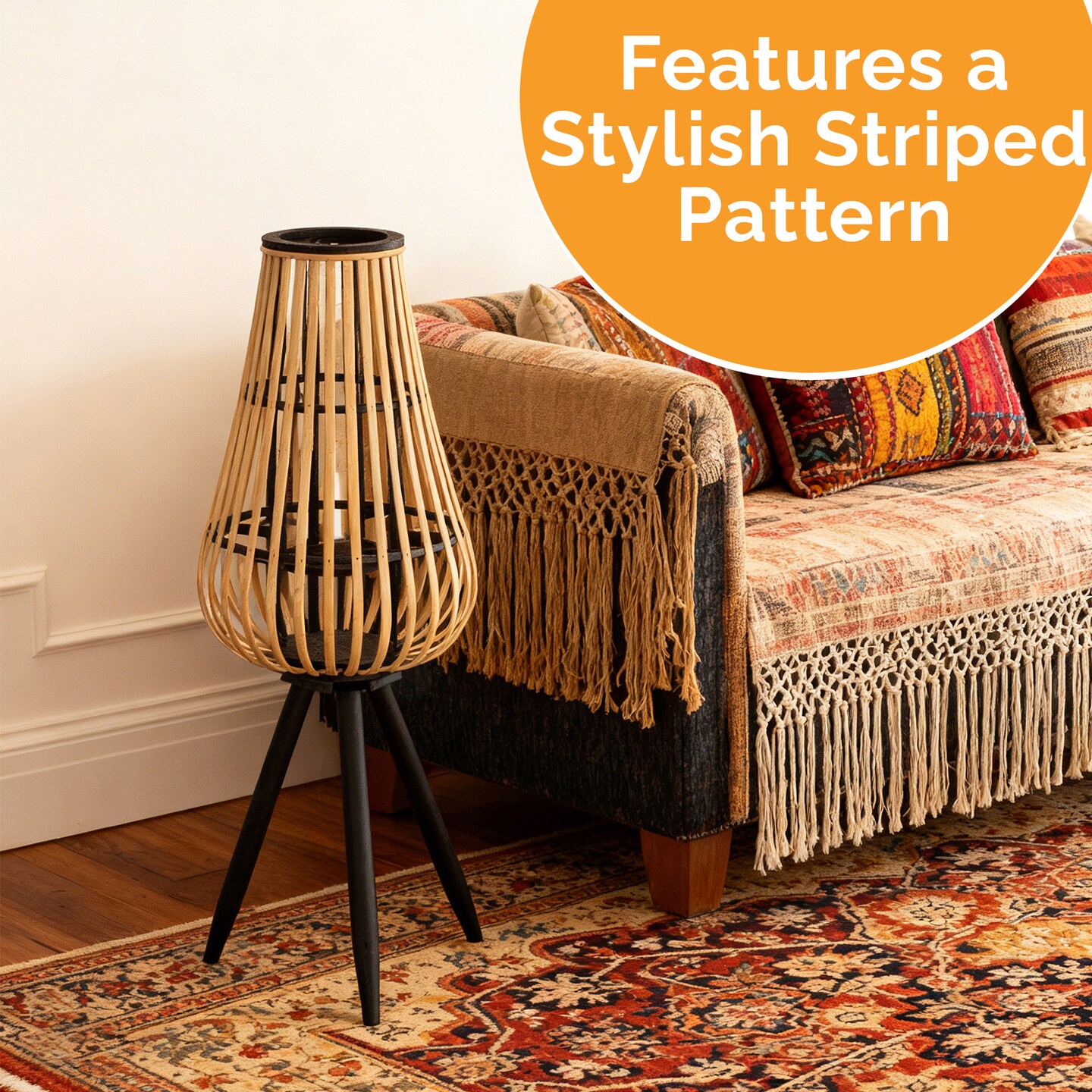 Vintiquewise Bamboo Lantern-Style Floor Lamp with Tripod Stand & Glass Insert – Farmhouse & Modern Boho Standing Light for Warm Mood Lighting in Living Room Bedroom Dining Room and Home Studio, 29"