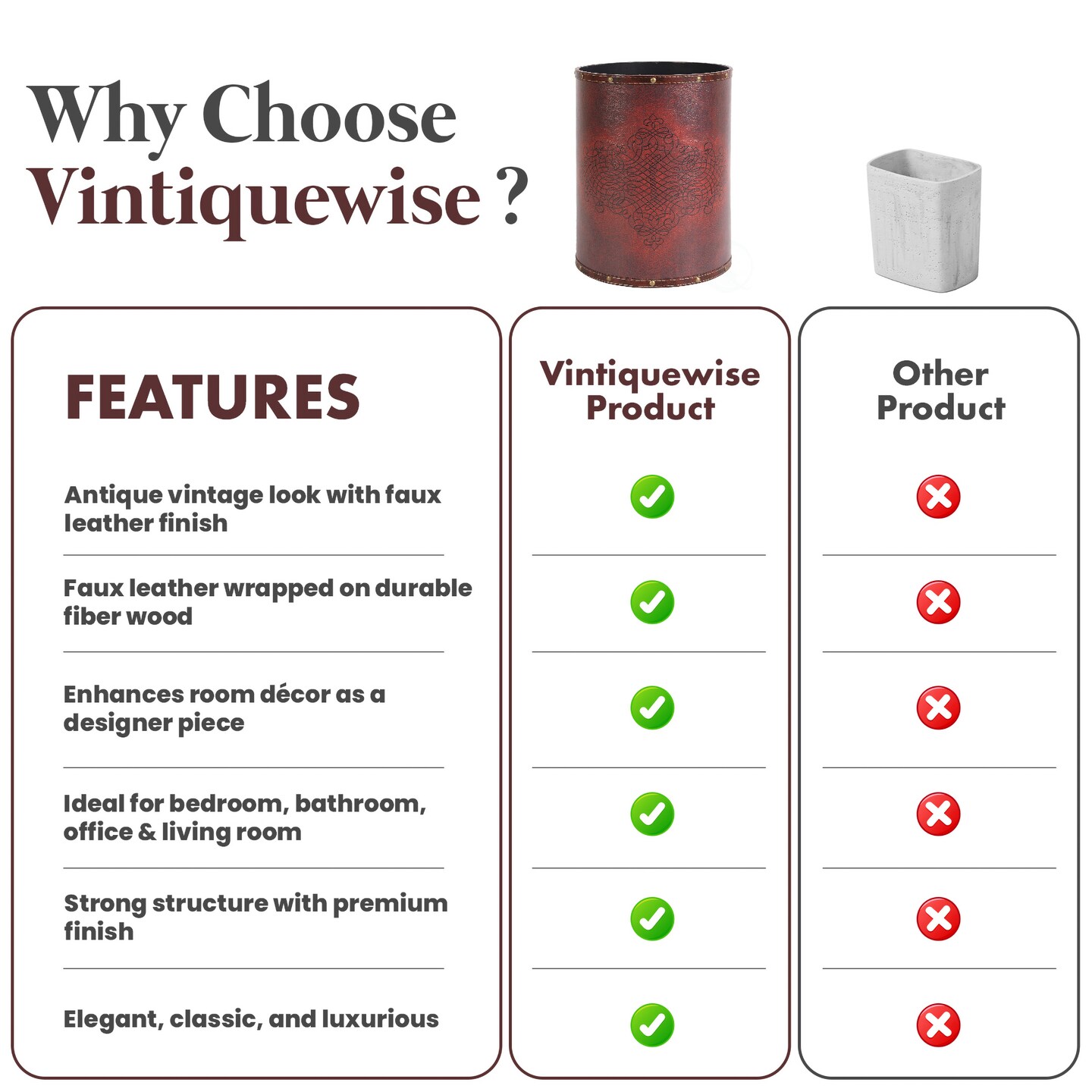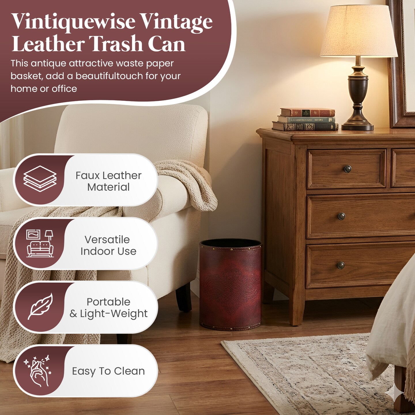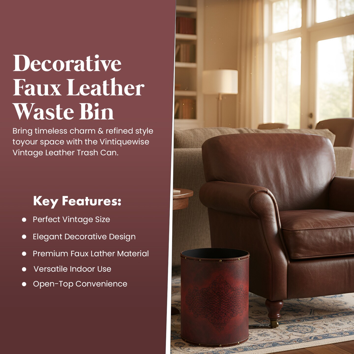 Vintiquewise Faux Leather Antique Design Waste Bin
