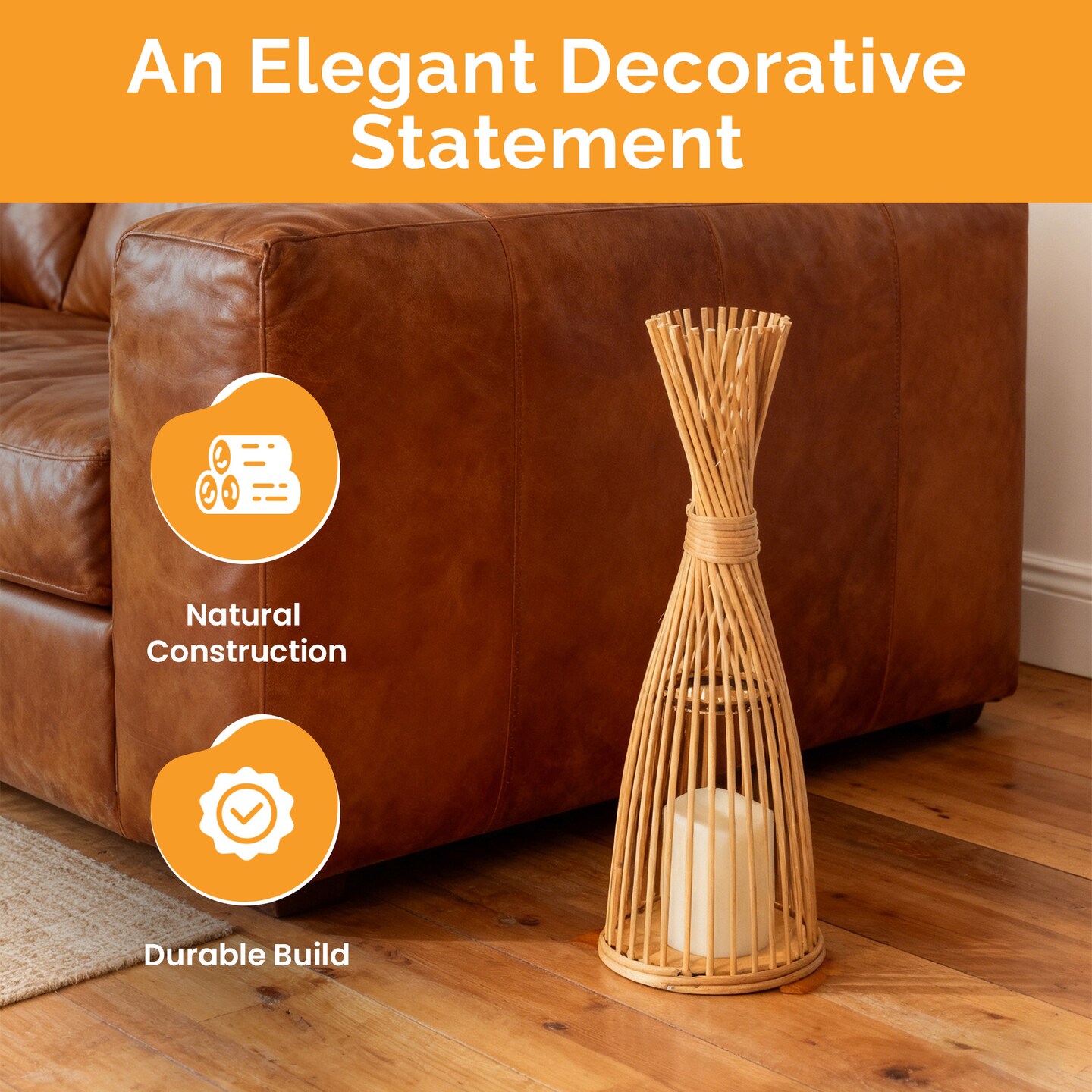 Vintiquewise Hand-Woven Tall Bamboo LED Floor Standing Lantern – Bohemian Wicker Decorative Lamp and Farmhouse Accent for Living Rooms Entryways Patios and Garden