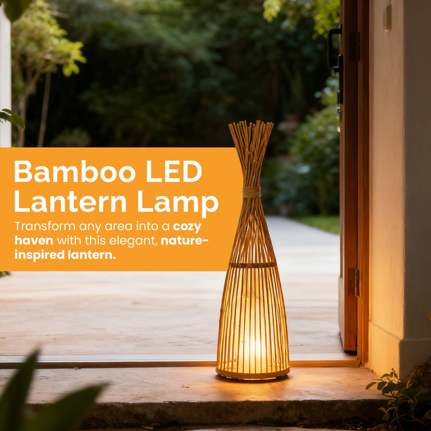 Vintiquewise Hand-Woven Tall Bamboo LED Floor Standing Lantern – Bohemian Wicker Decorative Lamp and Farmhouse Accent for Living Rooms Entryways Patios and Garden