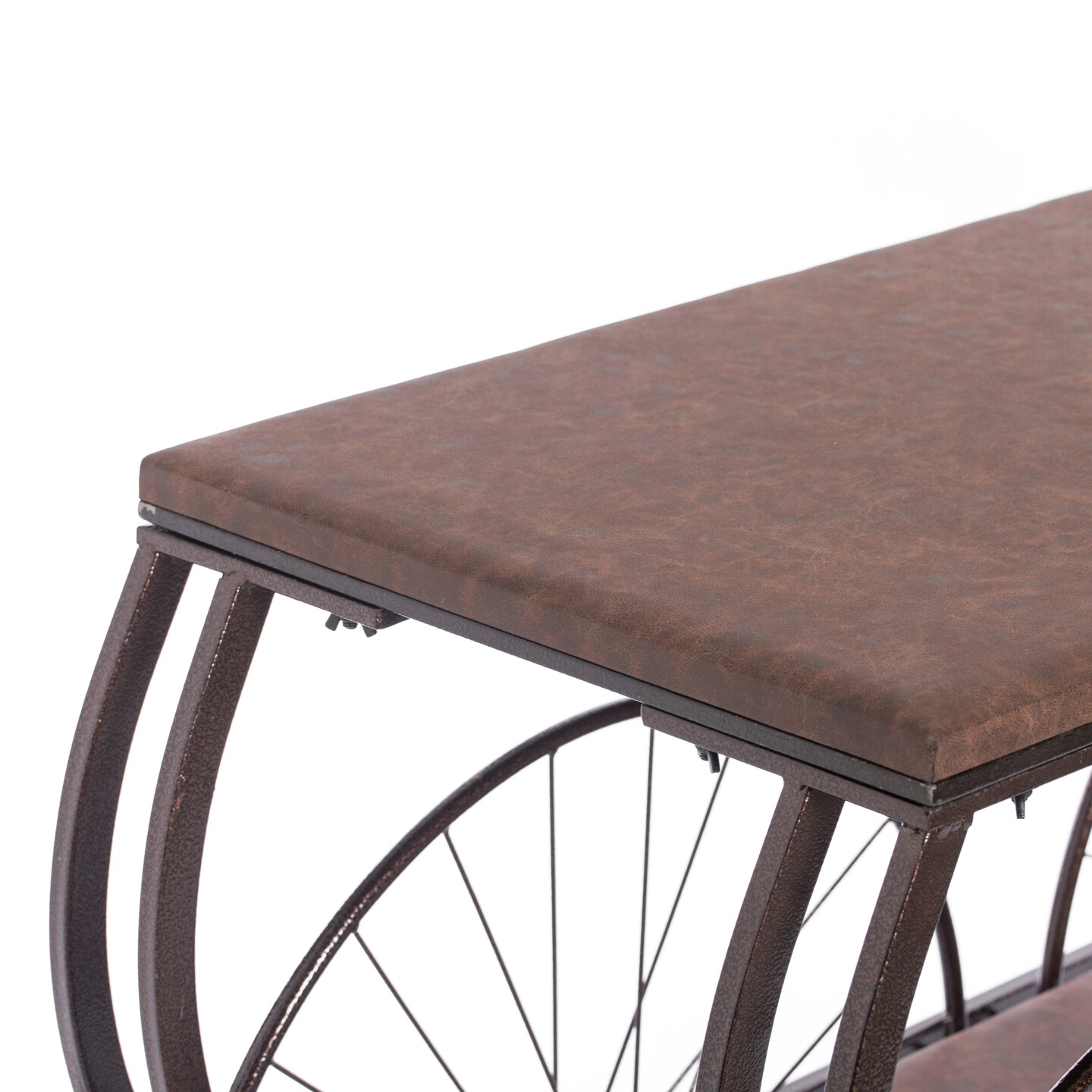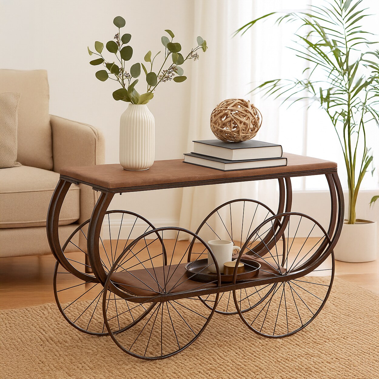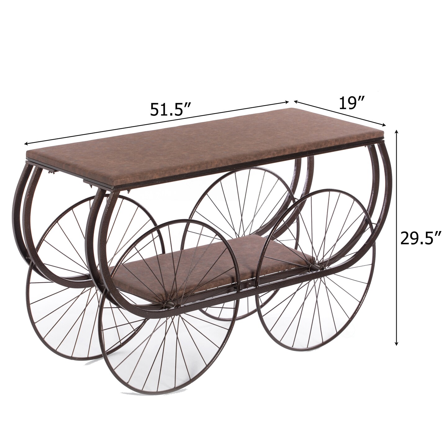 Vintiquewise Industrial Wagon Style Console Table Rustic Wood Top Large Spoke Metal Wheels & Lower Storage Shelf Vintage Accent Display Table for Hallway Entryway Dining Room Living Room or Home Bar