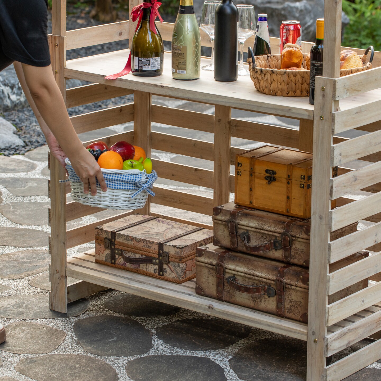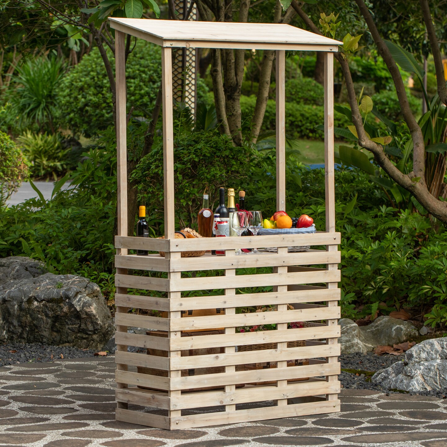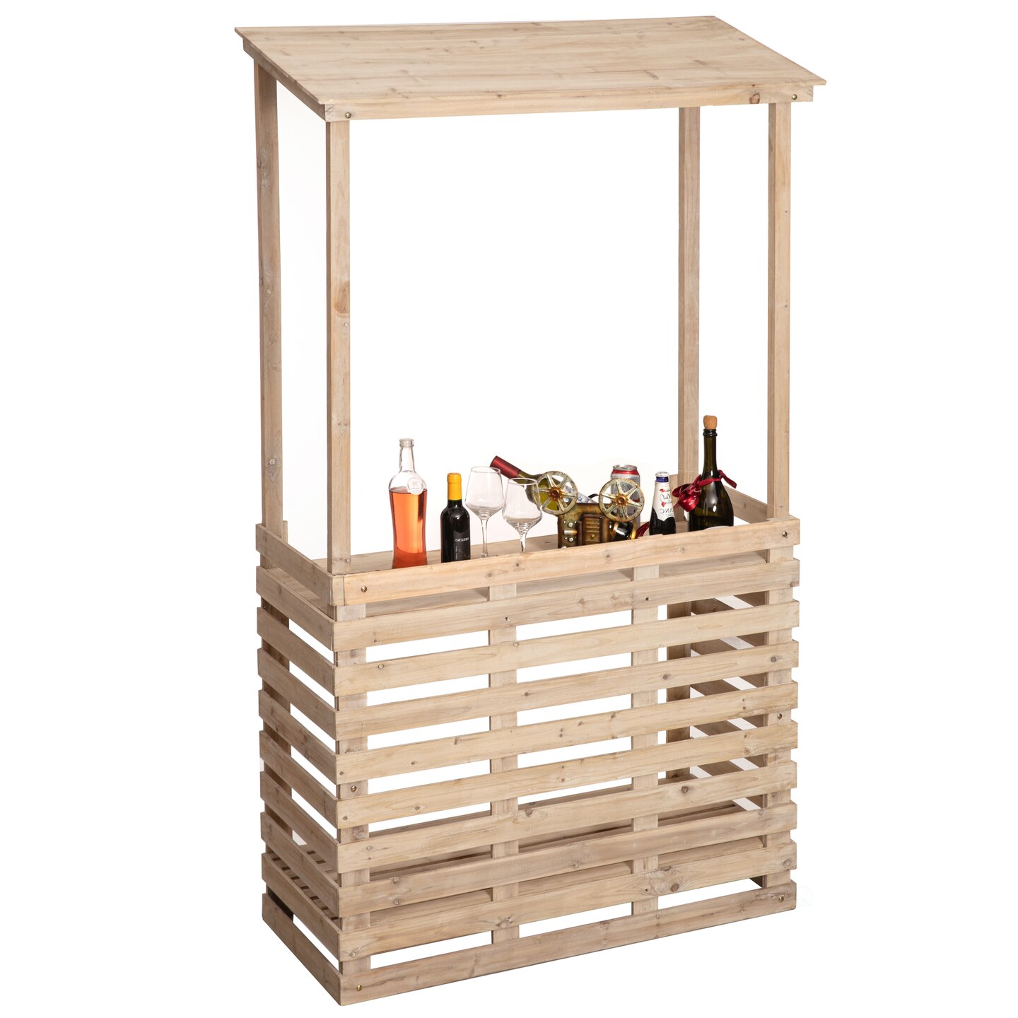 Vintiquewise Multi-Use Wooden Outdoor Bar Counter with Roof - Garden & Patio Serving Station Backyard Drink & Snack Bar Lemonade Stand Event Booth for Home Parties Wedding BBQ & Seasonal CelebrationPatio Bar Table with Roof