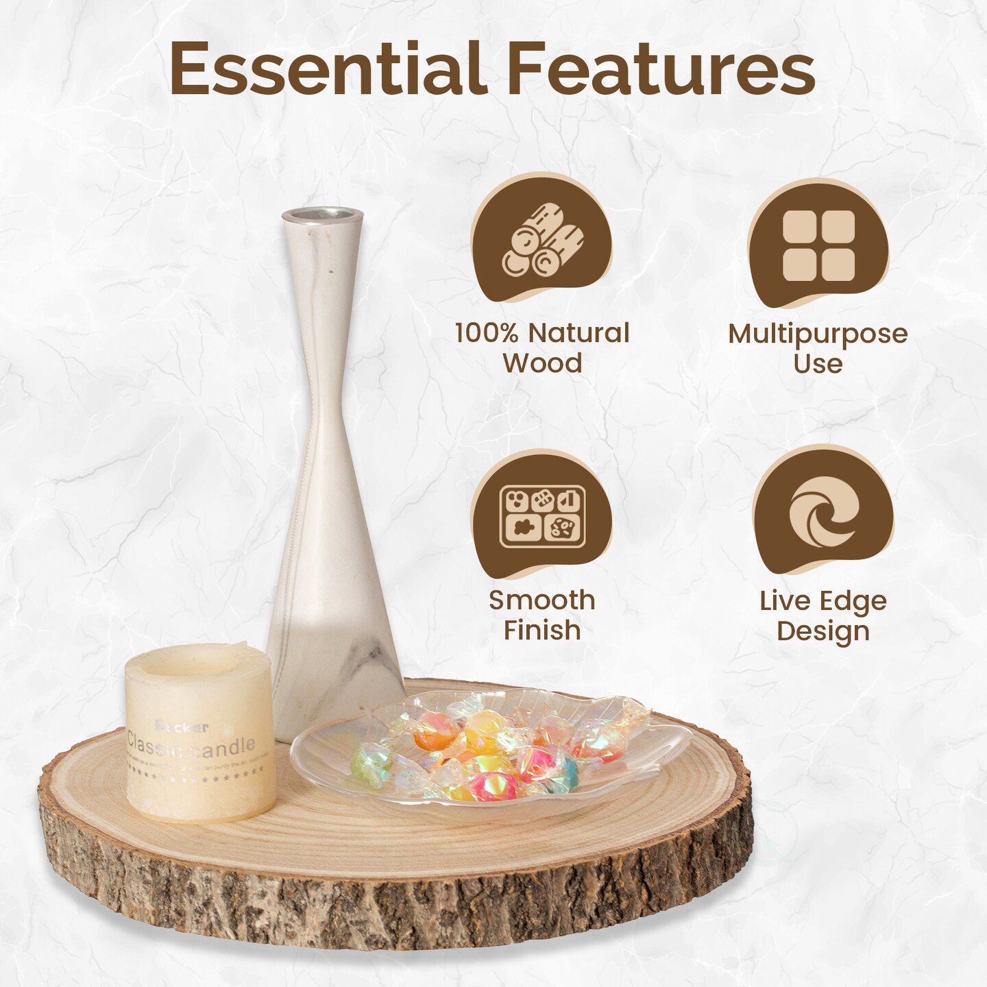Vintiquewise Set of 4 Rustic Wood Slices Round Multi Purpose Natural Wooden Slabs for Chargers Cake Risers Serving Trays Table Centerpieces Home Decor DIY Crafts Party Supplies and Tableware
