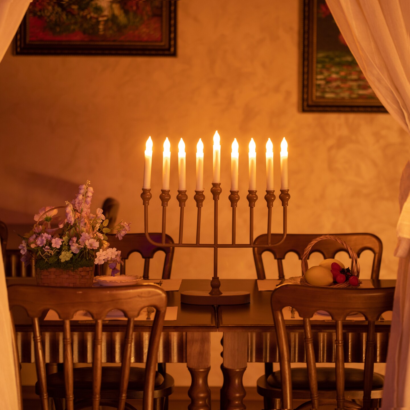 Vintiquewise Wall Mount 9-Branch Hanukkah Menorah Illuminated Display Contemporary Decorative Accent Judaica Centerpiece and Meaningful Gift for Hanukkah Celebrations, Modern Black