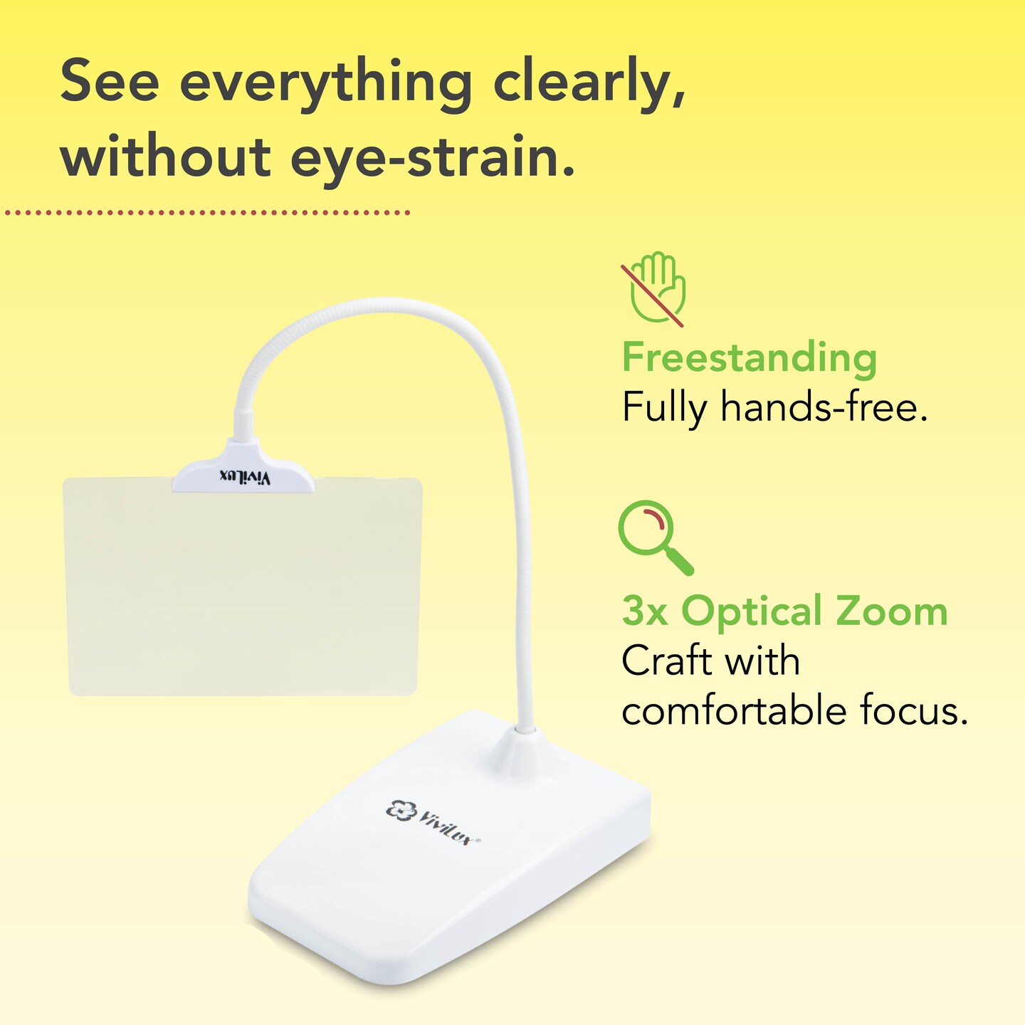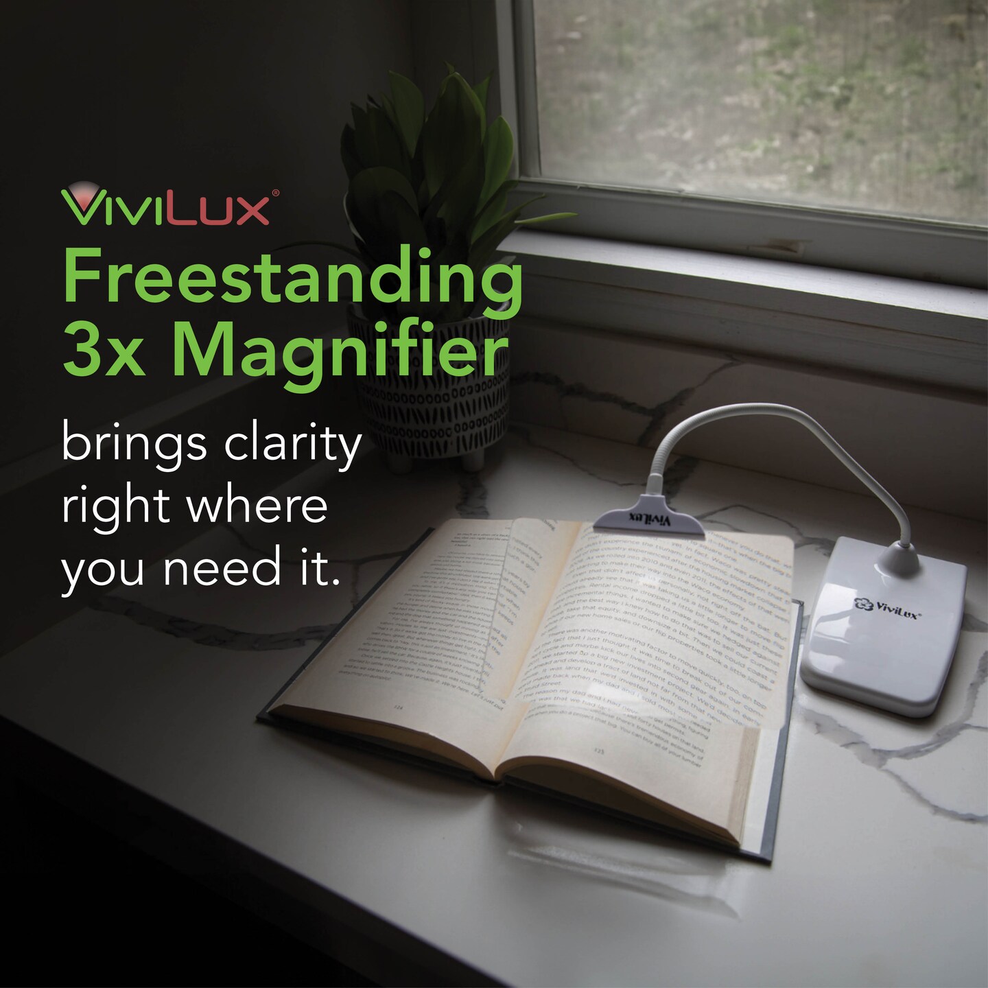 ViviLux Optical Grade 6"x4" Freestanding 3X Magnifier for Reading with Flexible Arm for Hands-Free Precision – Ideal for Hobby Desks & Sewing Stations