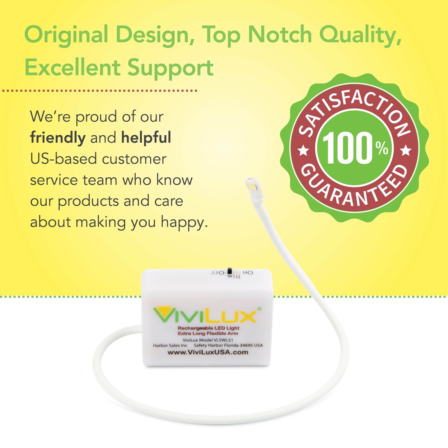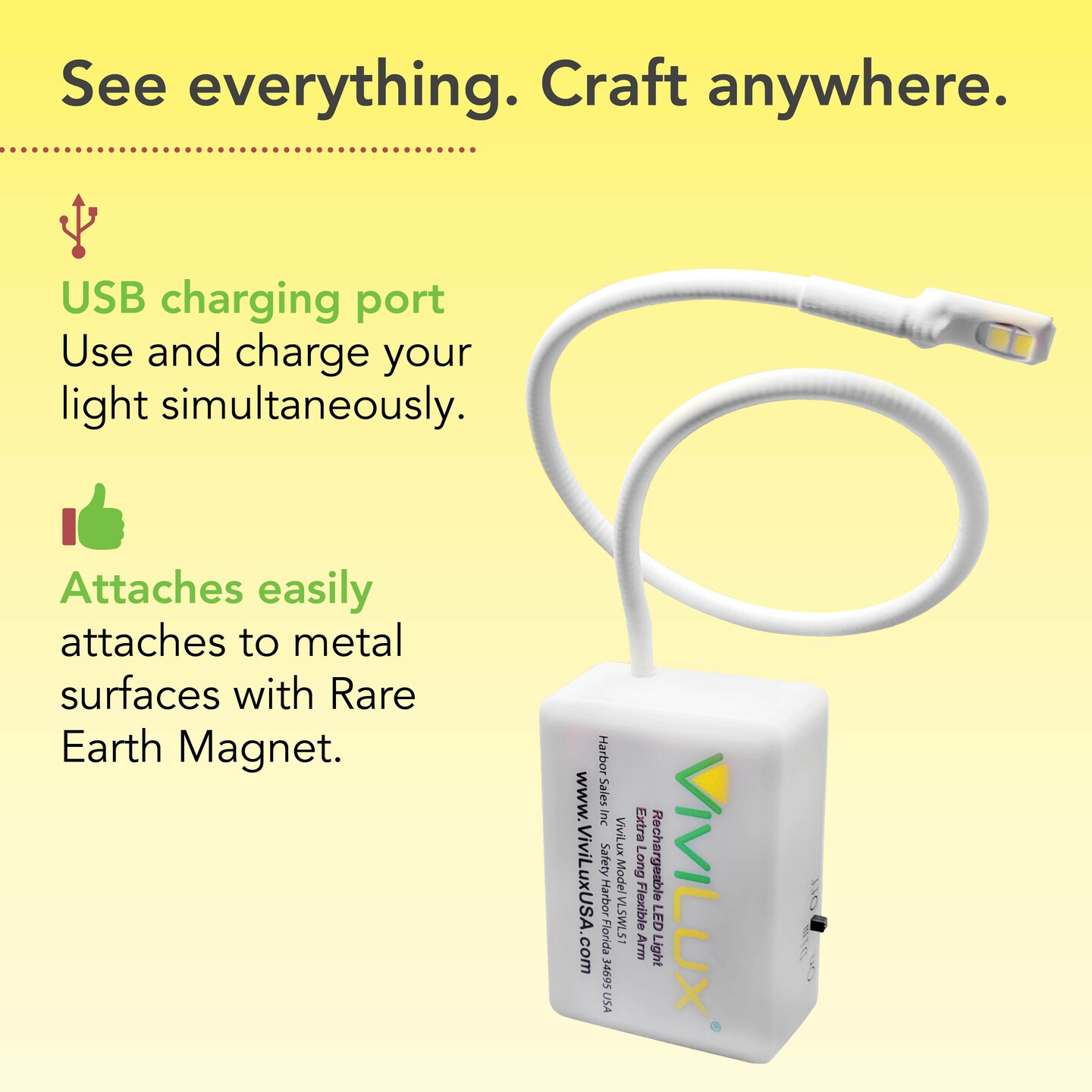 ViviLux Ultralight XL Craft and Sewing Light, 11" Extended Flexible Arm, Rechargeable Battery, Super Bright LED Hobby Light with Rare Earth Magnet – for Metal Surfaces Only