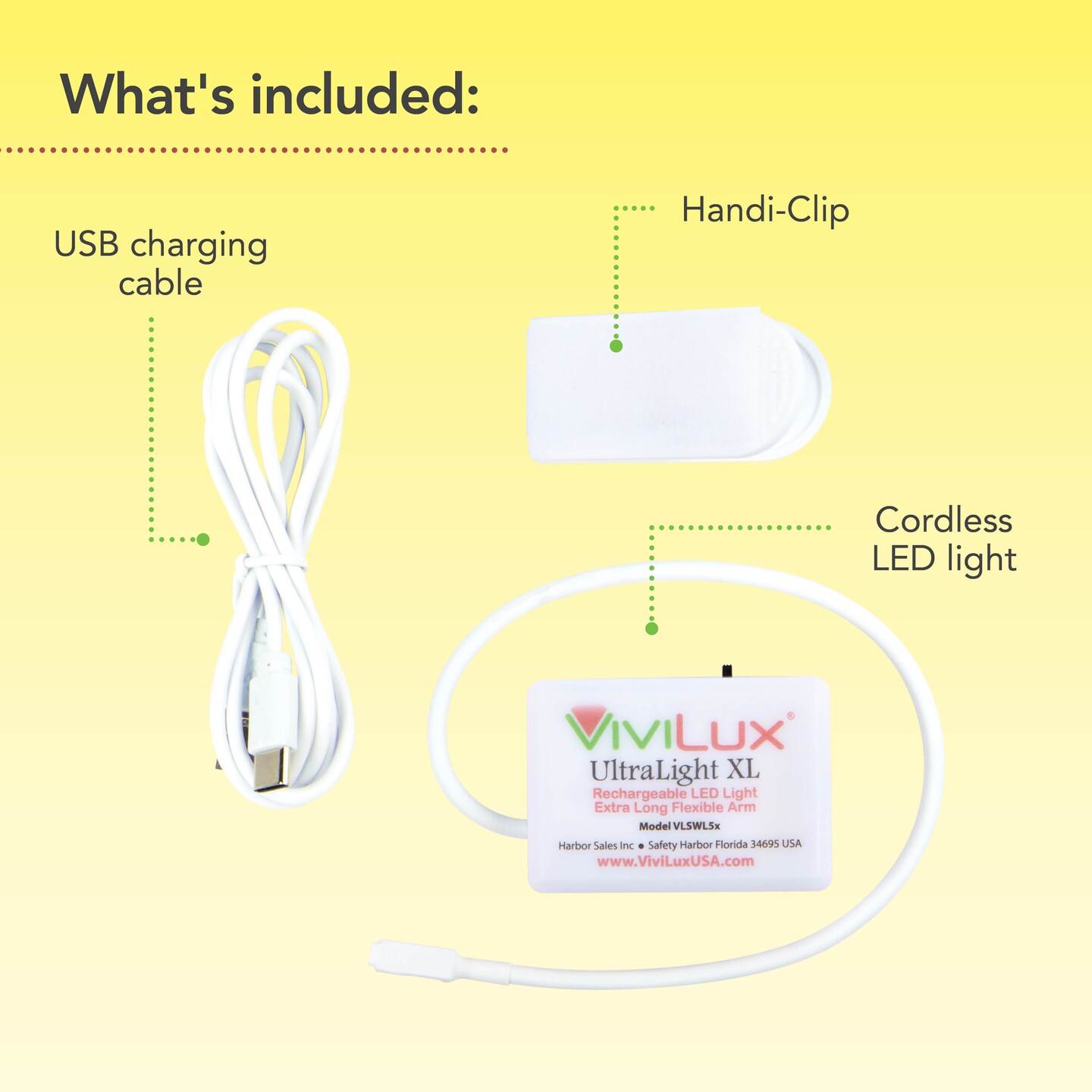ViviLux Ultralight XL Extra Long Flexible LED Craft Light, Rechargeable Battery Portable Lighting for Crafts, Sewing, & Reading, Includes Handi-Clip & Mounting Tape