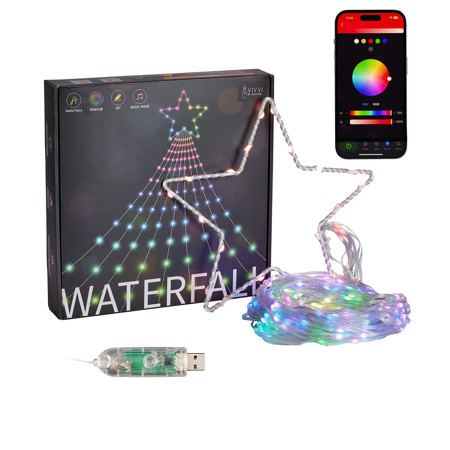 Vivvi App Based Outdoor Waterfall Lights, 11.8 Ft 344 LEDs