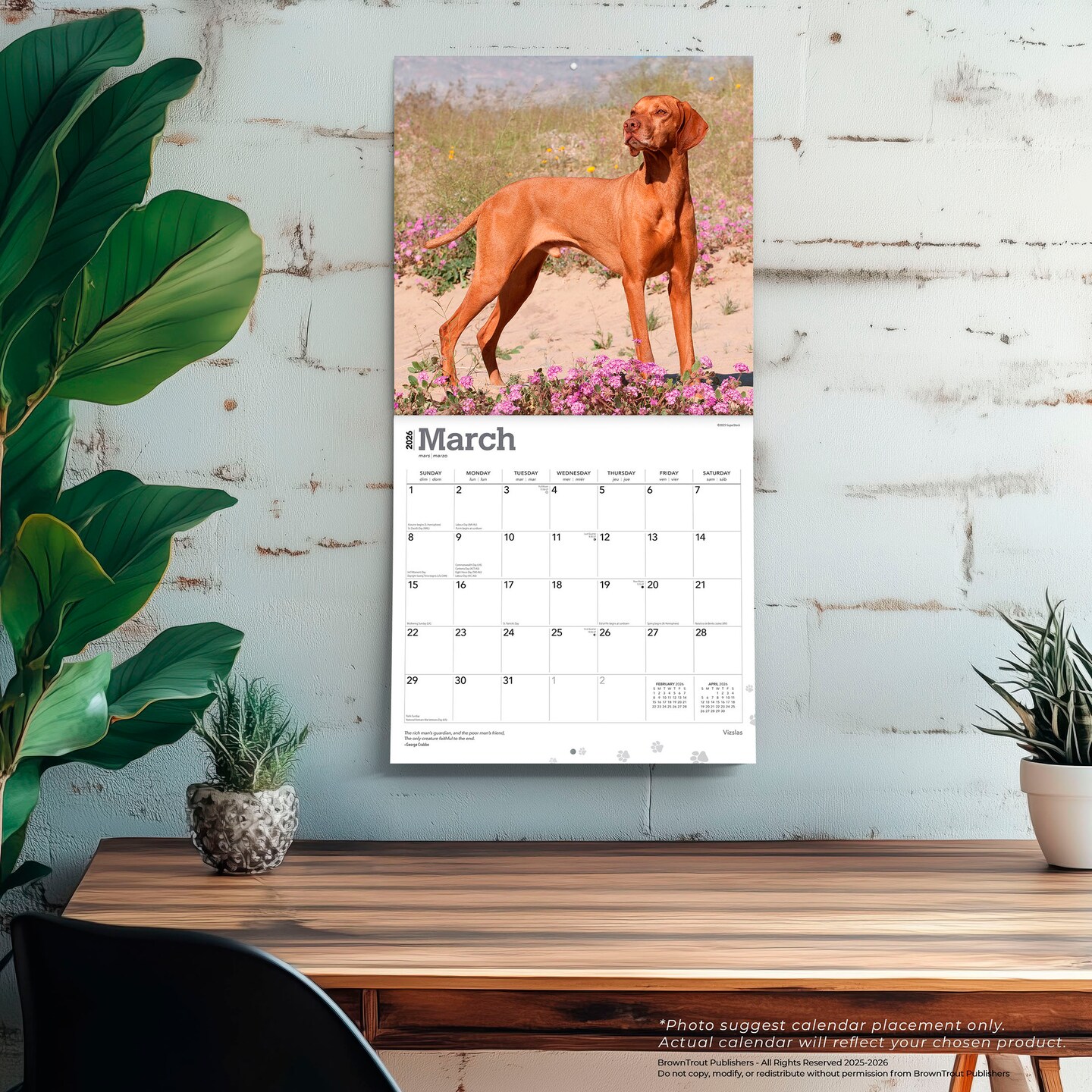Vizslas | 2026 12 x 24 Inch (Hanging) Monthly Square Wall Calendar | Plastic-Free