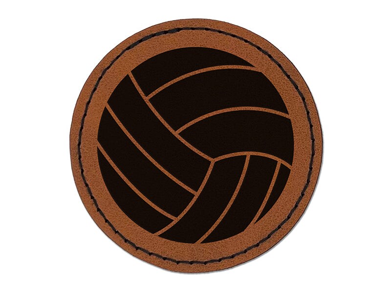 Volleyball Solid Round Iron-On Engraved Faux Leather Patch Applique - 2.5"