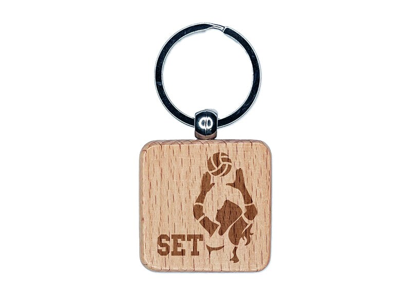 Volleyball Woman Set Sports Move Engraved Wood Square Keychain Tag Charm
