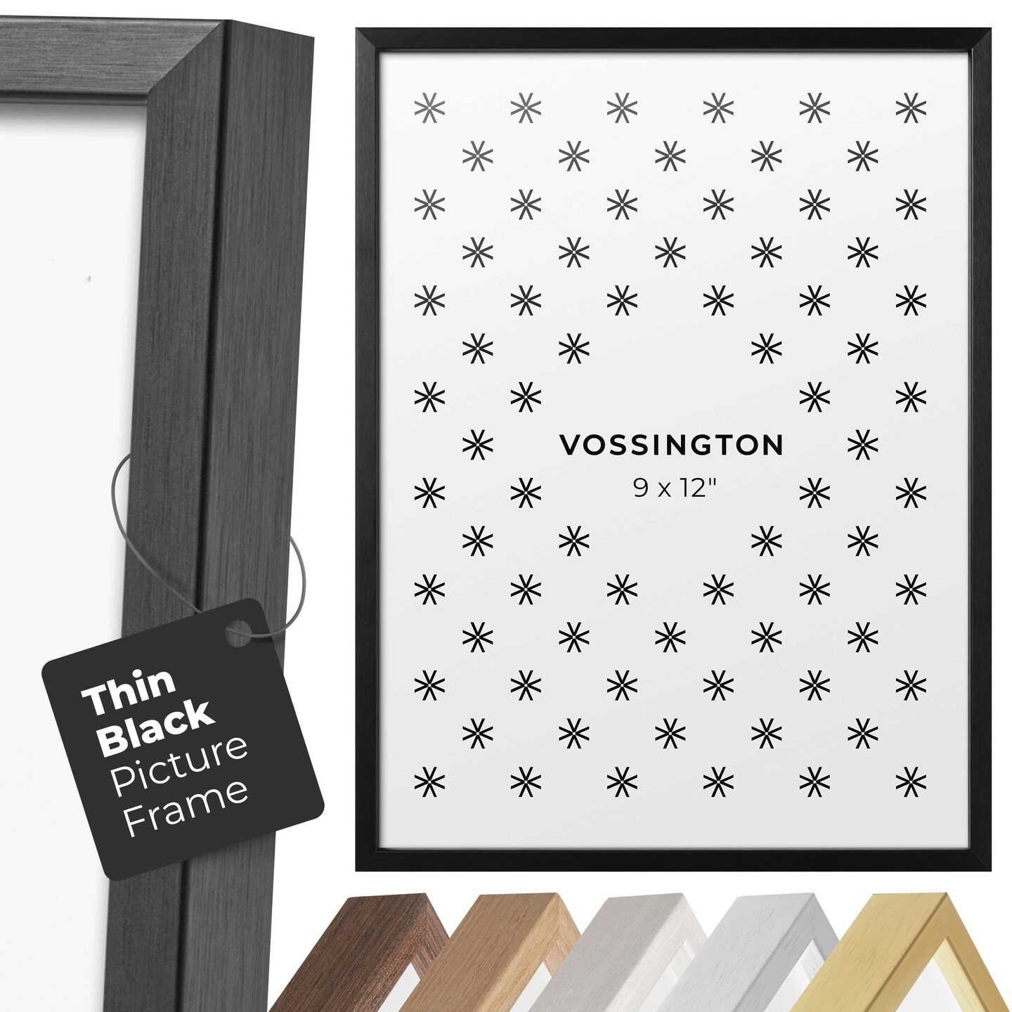Vossington Thin Picture Frame - Well-Made Poster Frame in Black, White, Gold, Silver, Wood, 4x6, 5x7, 8x10, 8x12, 8.5x11, 9x12, 11x14, 11x17, 12x12, 12x16, 12x18, 13x19, 16x16, 16x20, 16x24, 18x24, 20x20, 20x30, 22x28, 24x24, 24x30, 24x36, and 30x40