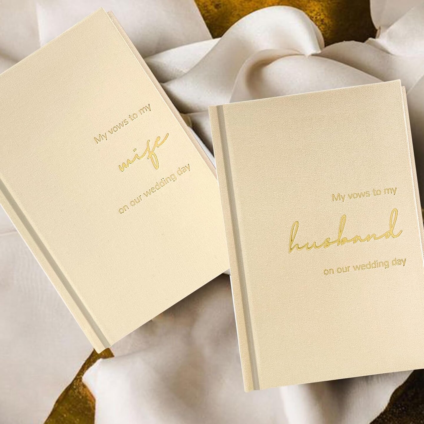 Vow Books His and Hers Set of 2 Canvas Linen Wedding Vow Books Husband and Wife Hard Cover Vow Books for Engagement Gifts(XZ-HW-Beige)