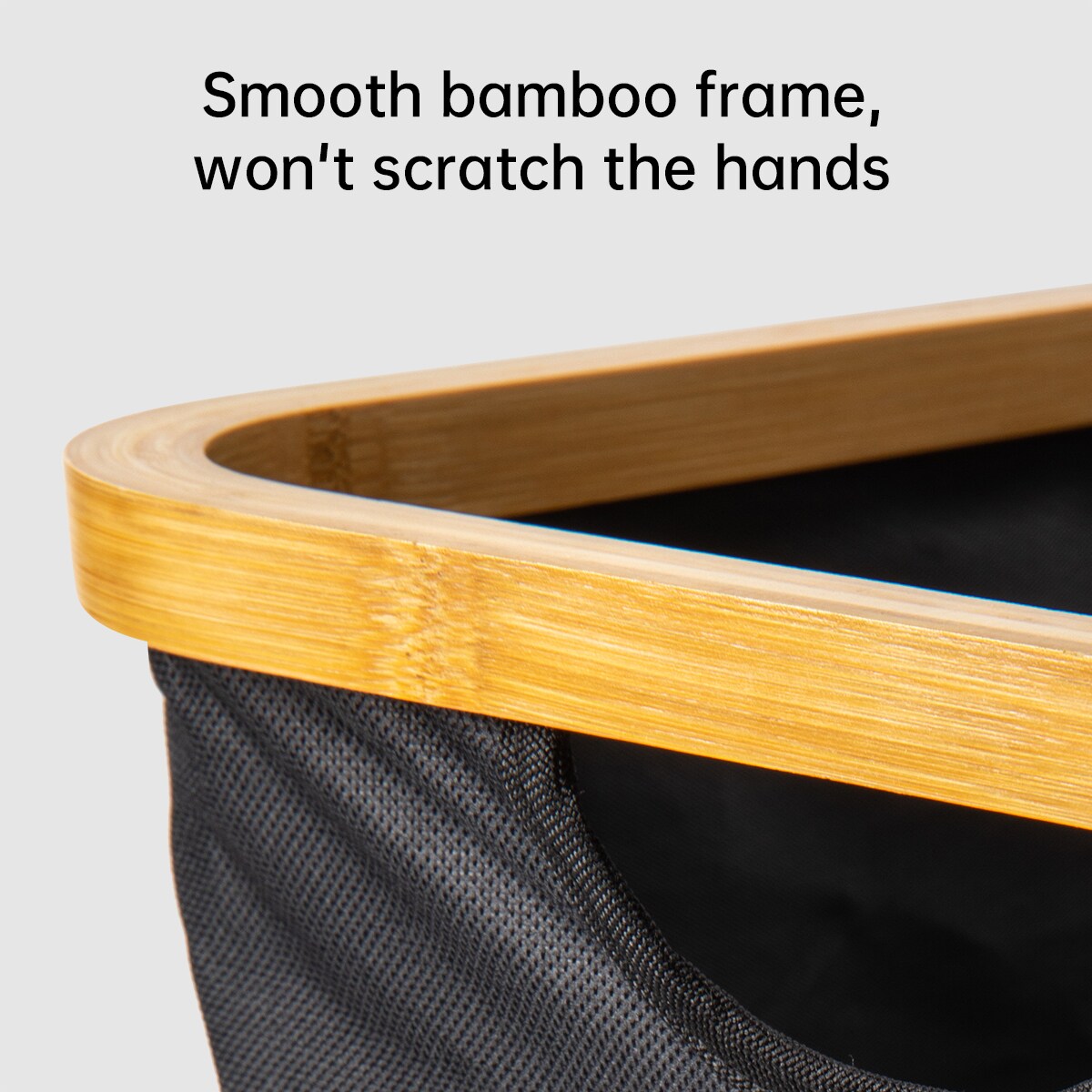 VUSIGN Bamboo Wood Frame Storage Medium Black – Medium Black Fabric Storage Basket with Bamboo Frame & Handles, Collapsible Home & Office Organizer, Set of 2