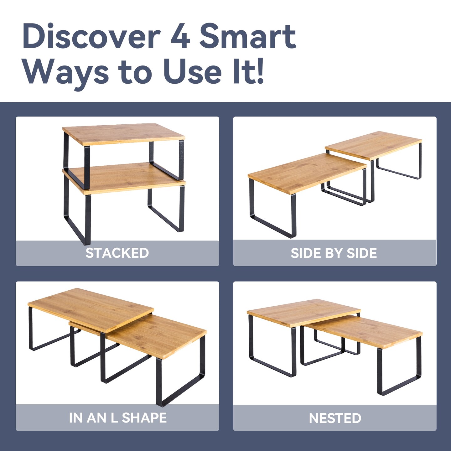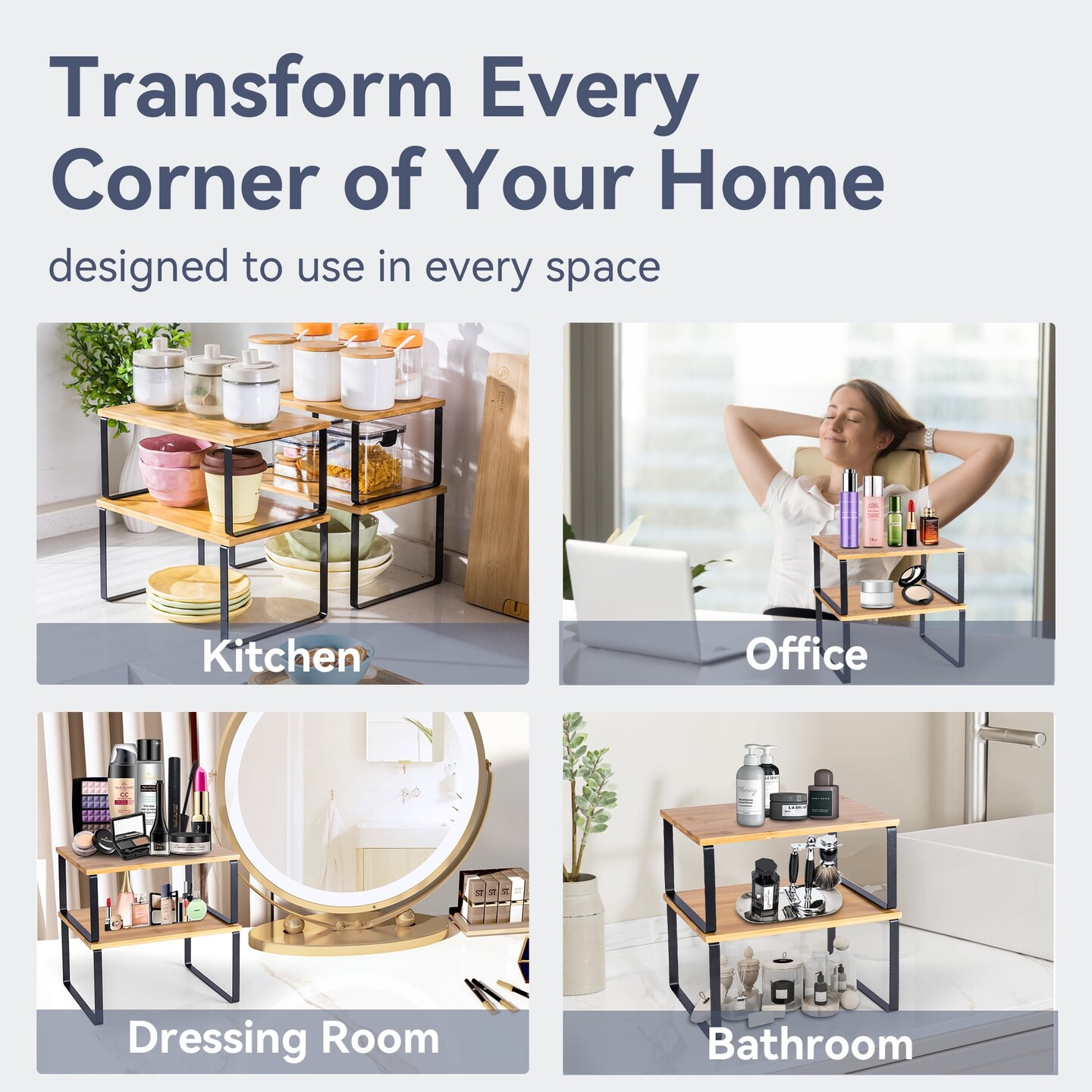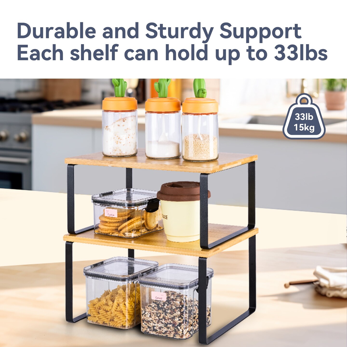 VUSIGN Cabinet Organizer Shelf, 4 Sets Kitchen Counter Shelves, Stackable Expandable Spice Rack,Cloud White and Natural Beige