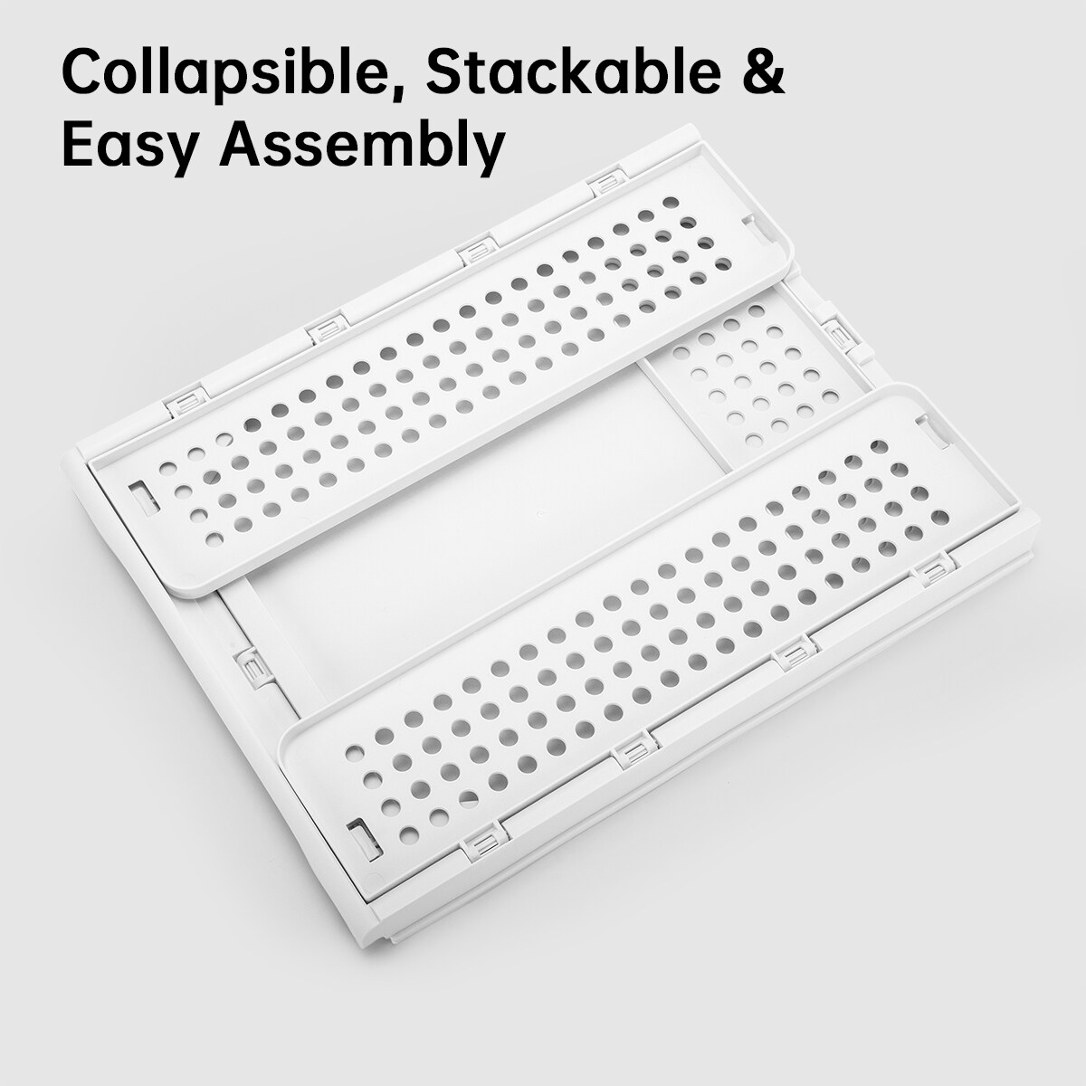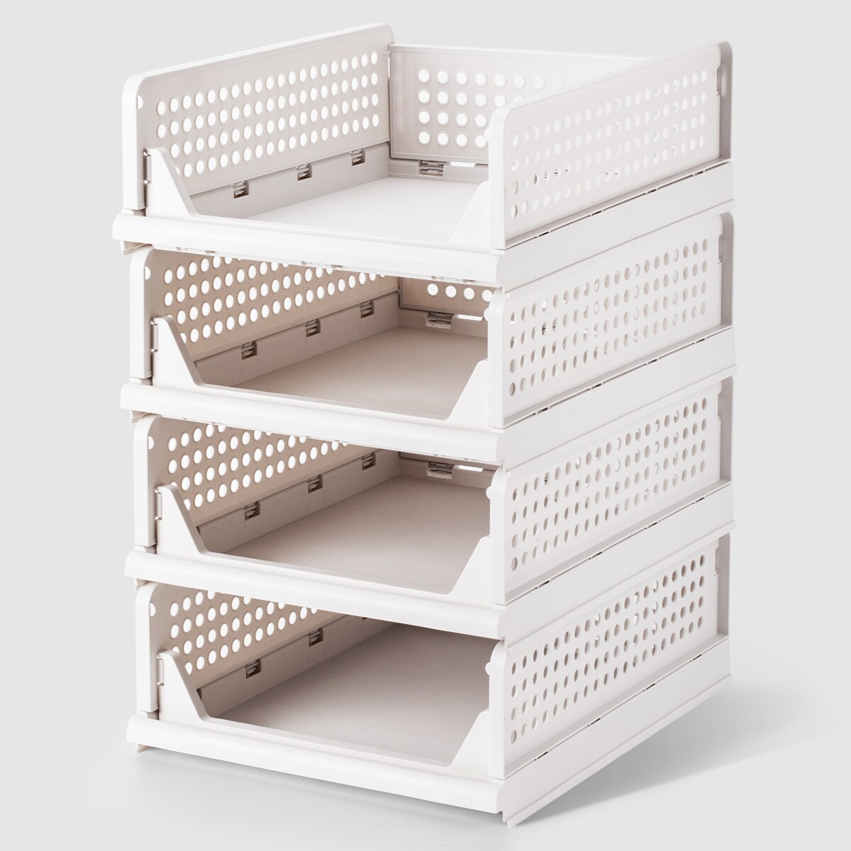 VUSIGN Hollow Design Crates Light Beige – Large 17.2″ × 13.2″ × 10″ Fold-Flat Stackable Plastic Storage Bins, 4-Pack