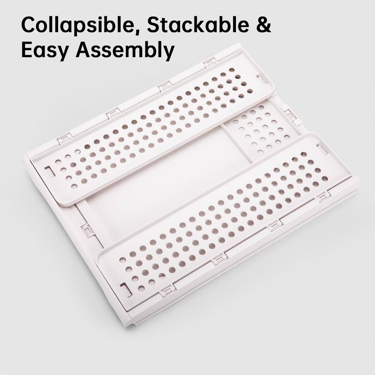 VUSIGN Large Mix-Light-Beige Collapsible Storage Crates – Fold-Flat Plastic Bins for Home & Office Organization, 3-Pack