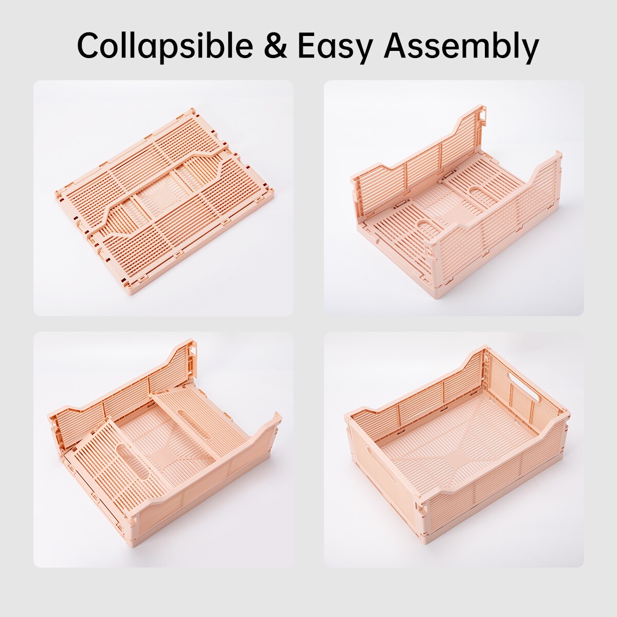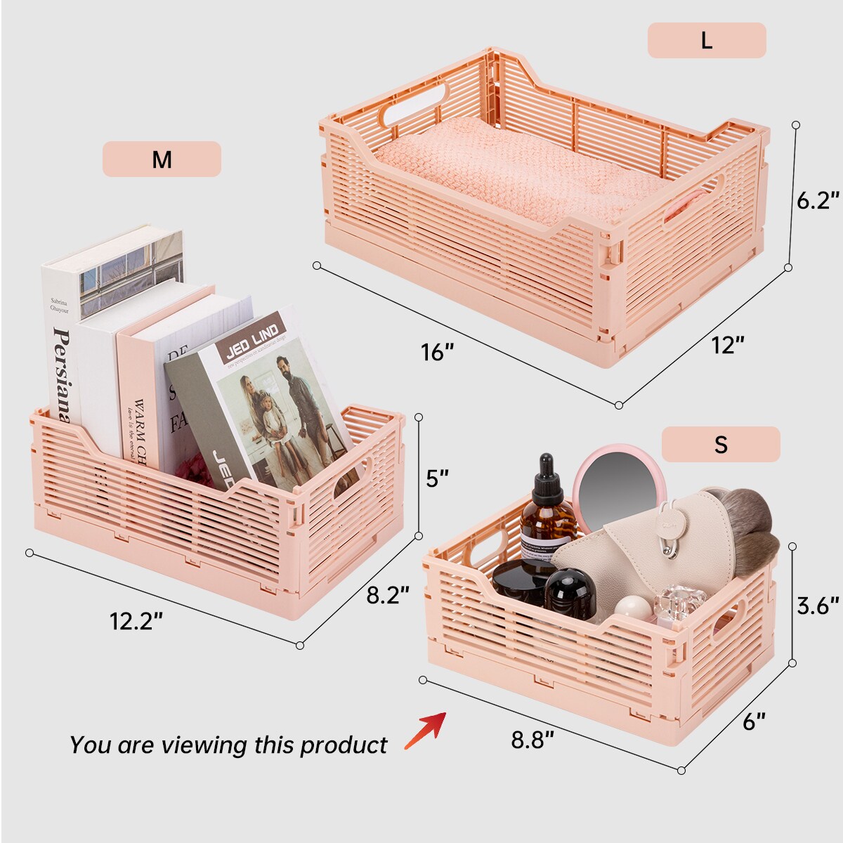 VUSIGN Large Pink Collapsible Storage Crates – Fold-Flat Plastic Bins (16″×12″×6.2″) for Home, Office & Closet Organization, 4-Pack