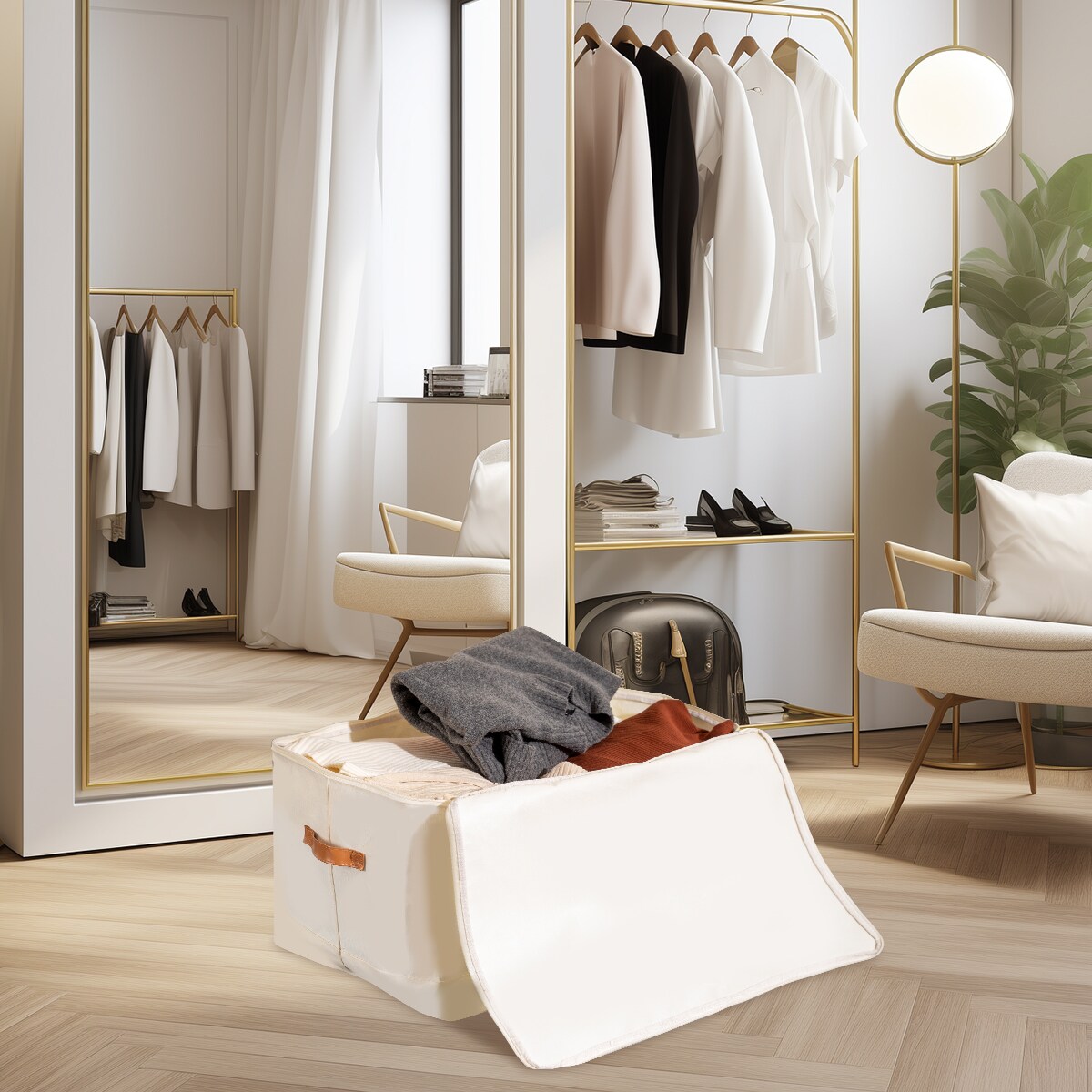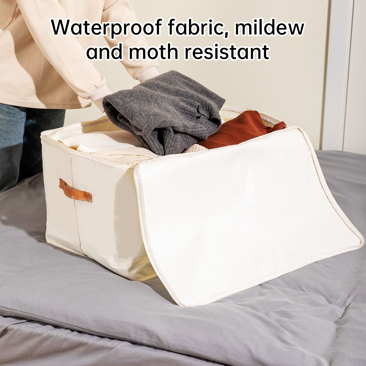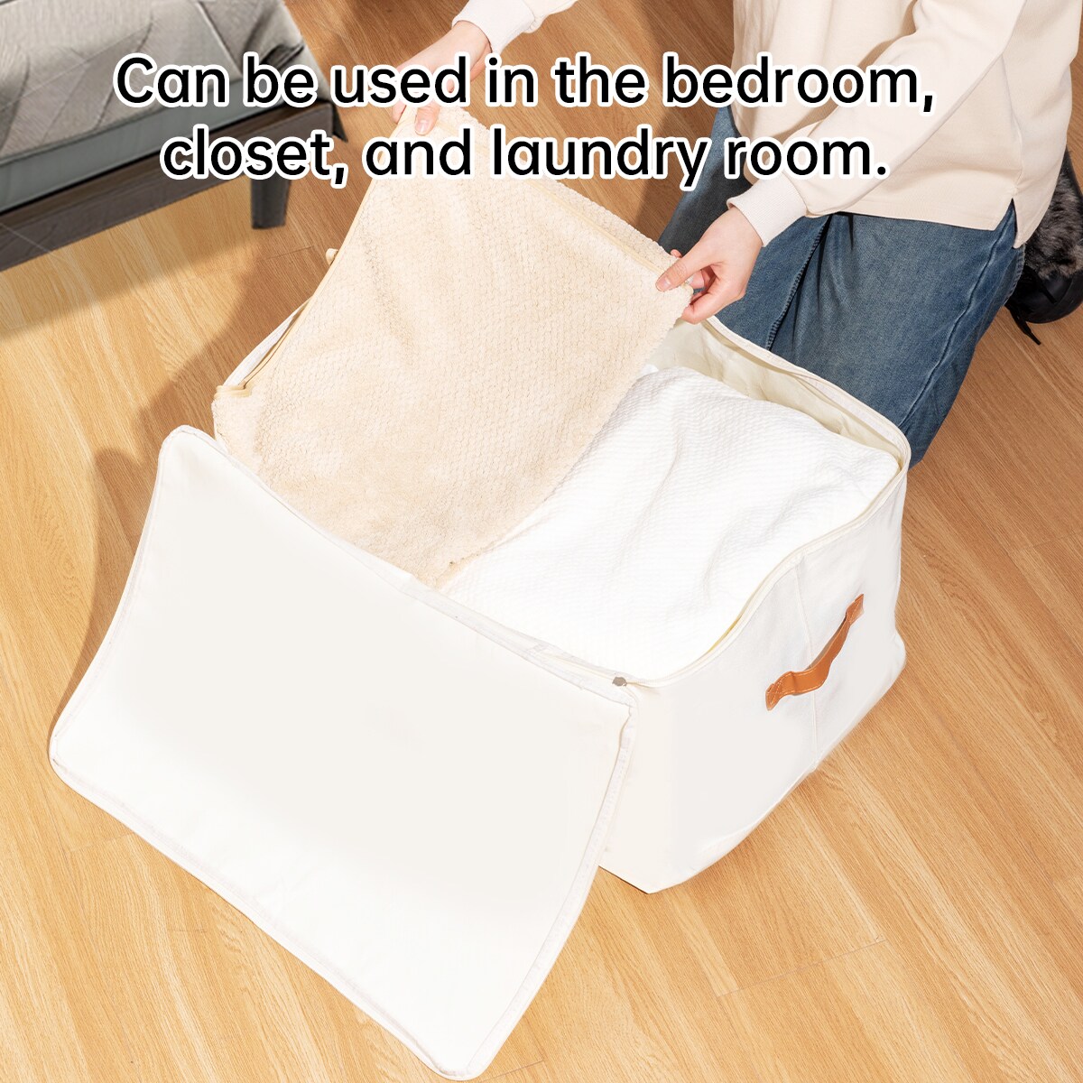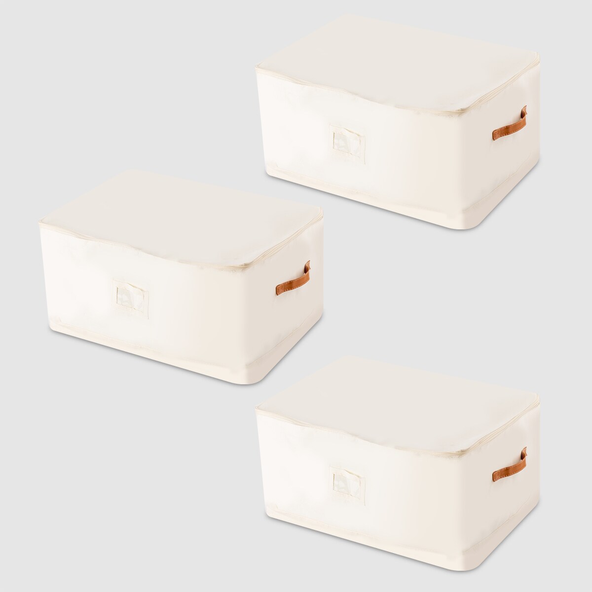 VUSIGN Under‑Bed Zippered Storage Bag – 22″×17.6″×7.2″ Light Beige Fabric Organizer for Bed, Couch & Closet (3‑Pack)