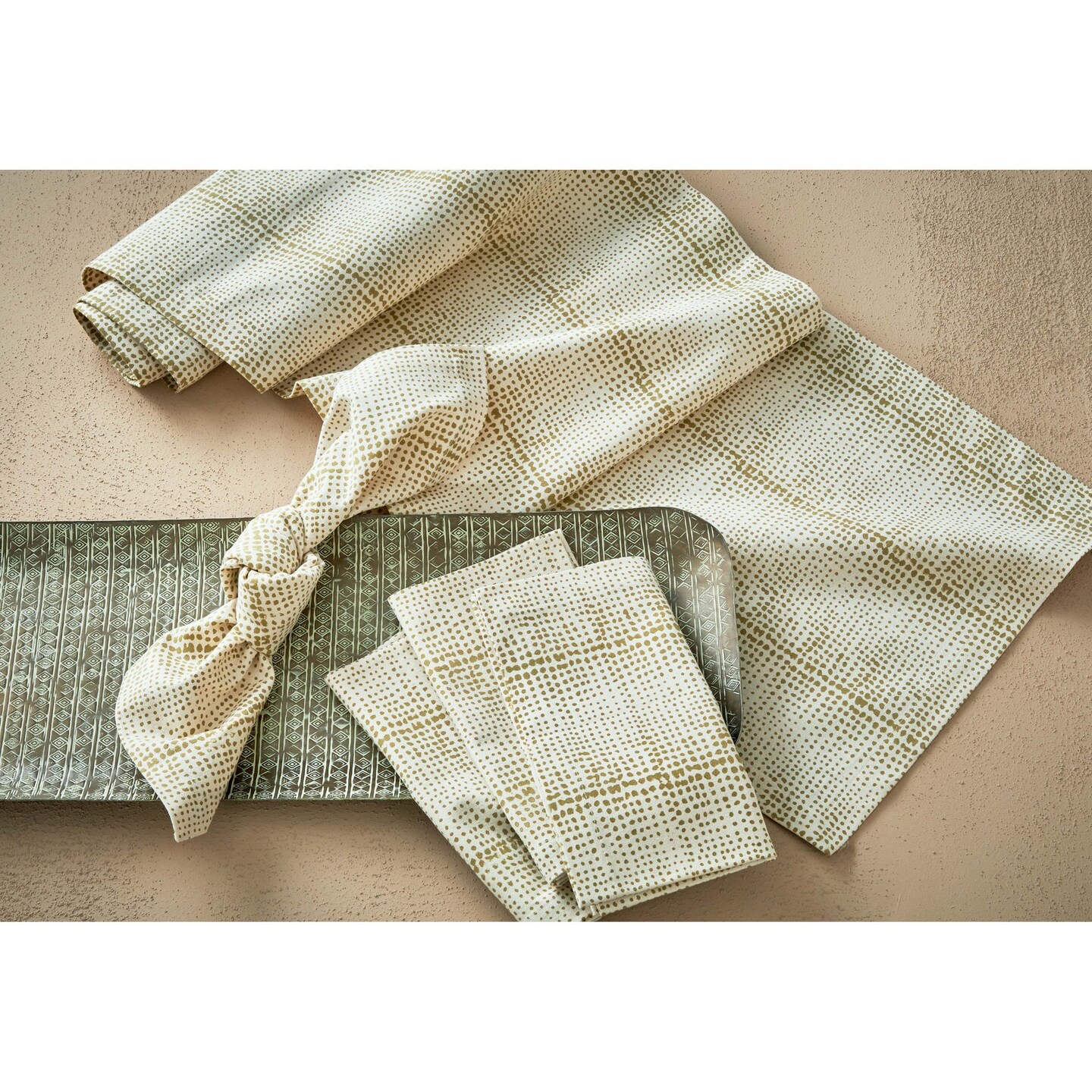 Wabi Sabi Dot Block Print on Beige Background Cotton Machine Washable Table Runner Décor Decoration 72" x 14.5"-in.