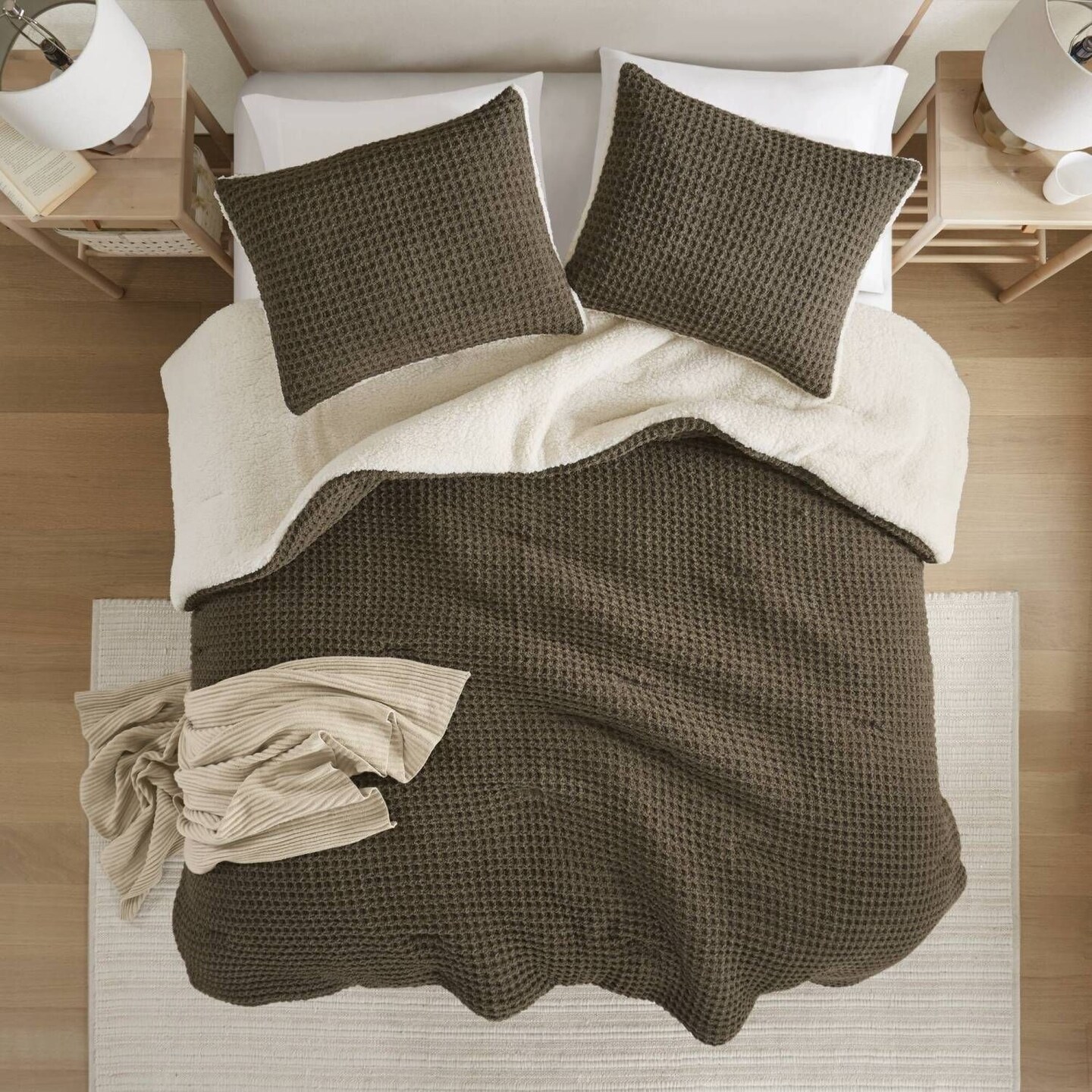 Waffle Knit Chenille Twin Comforter Set 3 Piece