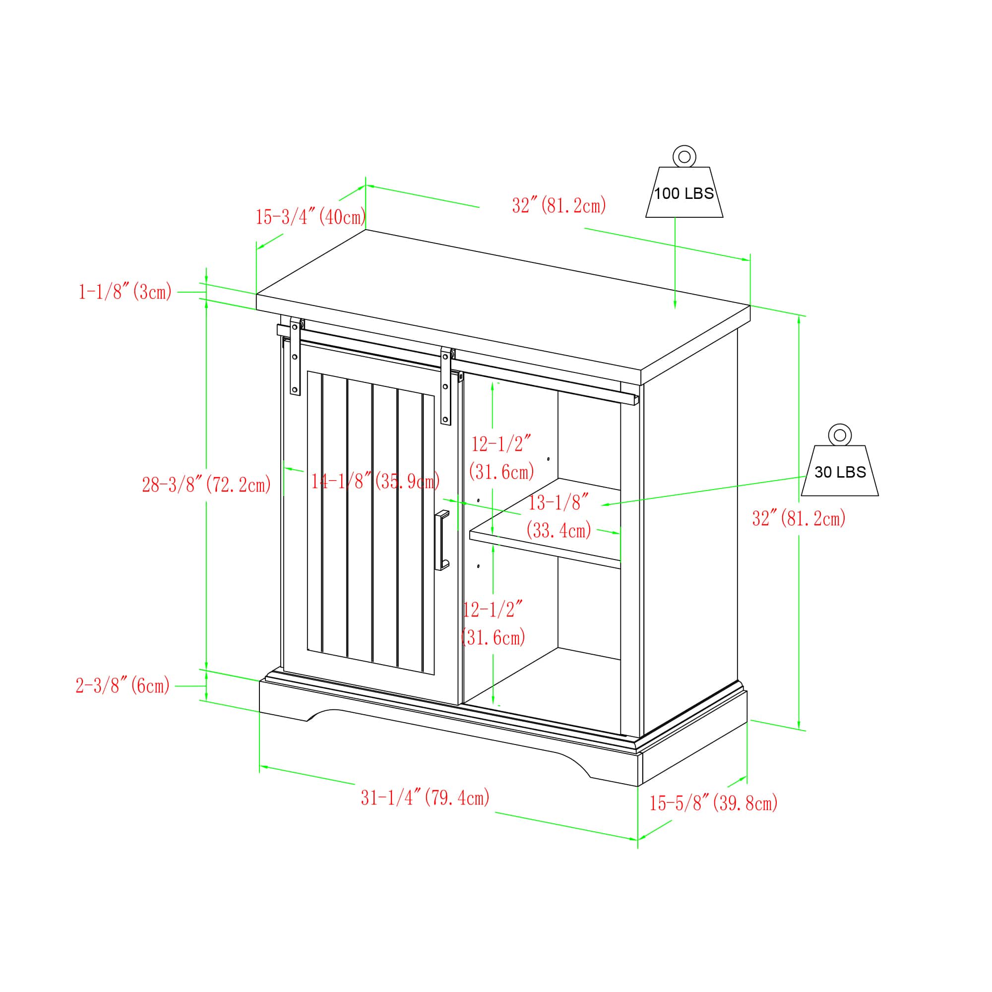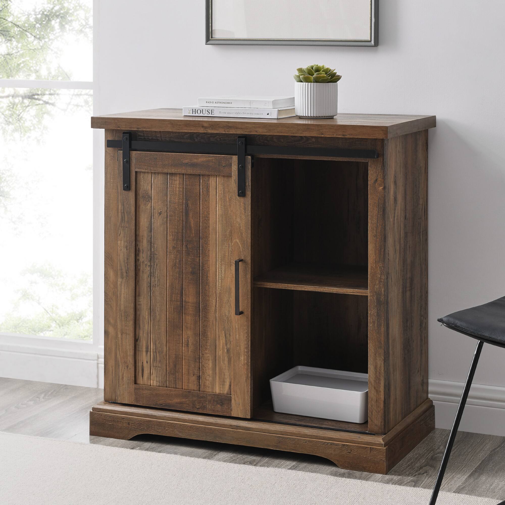 Walker Edison 32" Reclaimed Barnwood Sliding Grooved Door Modern Accent Cabinet